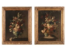 Scuola del XVIII secolo Nature morte con vasi di fiori