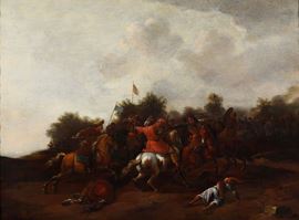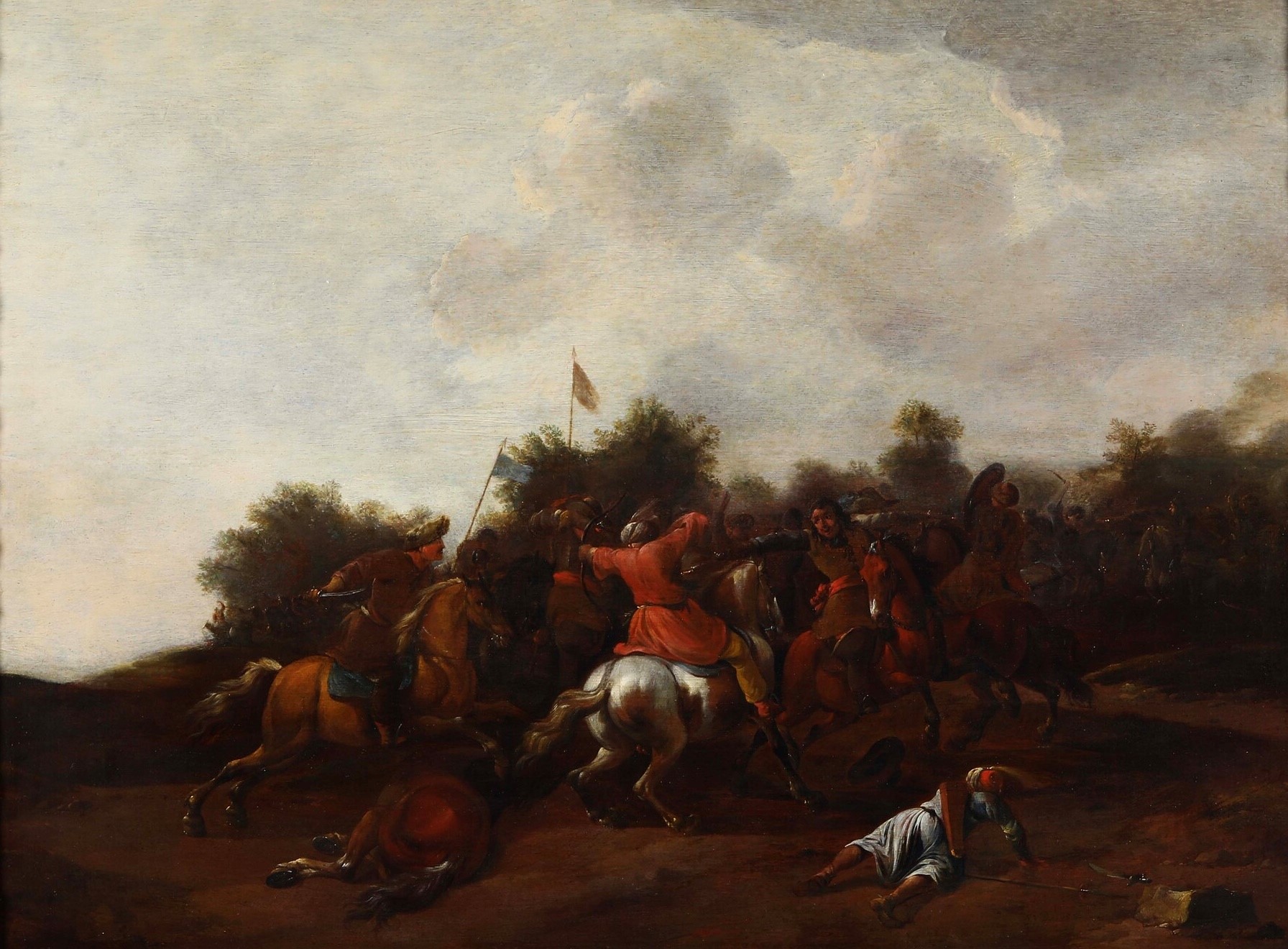 Scuola fiamminga del XVIII secolo Scontro di cavalleria