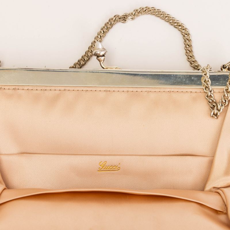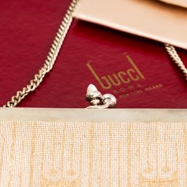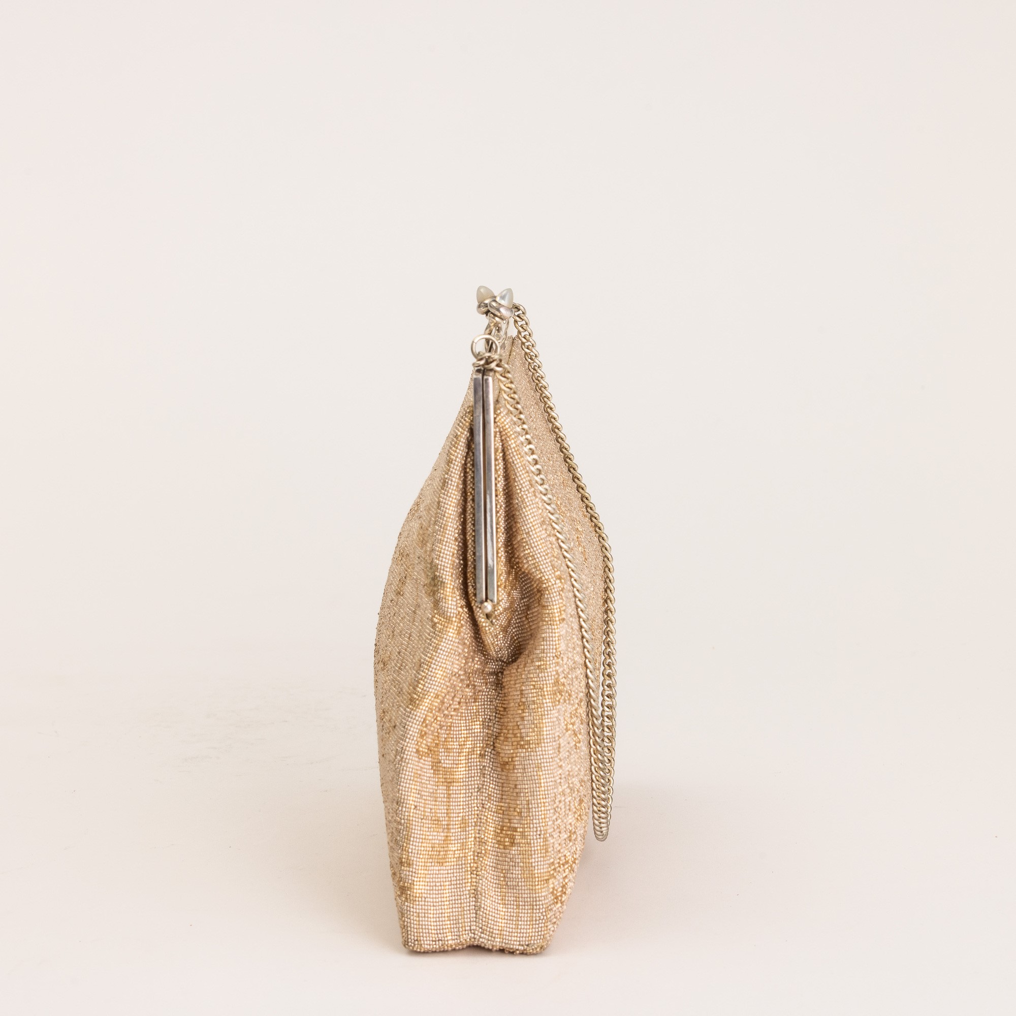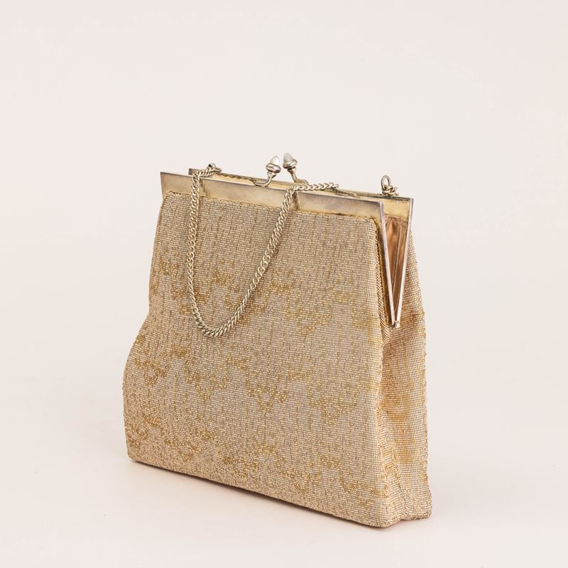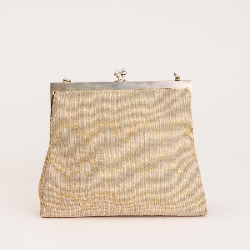 Borsetta vintage in perline color champagne, anni '50-'60.