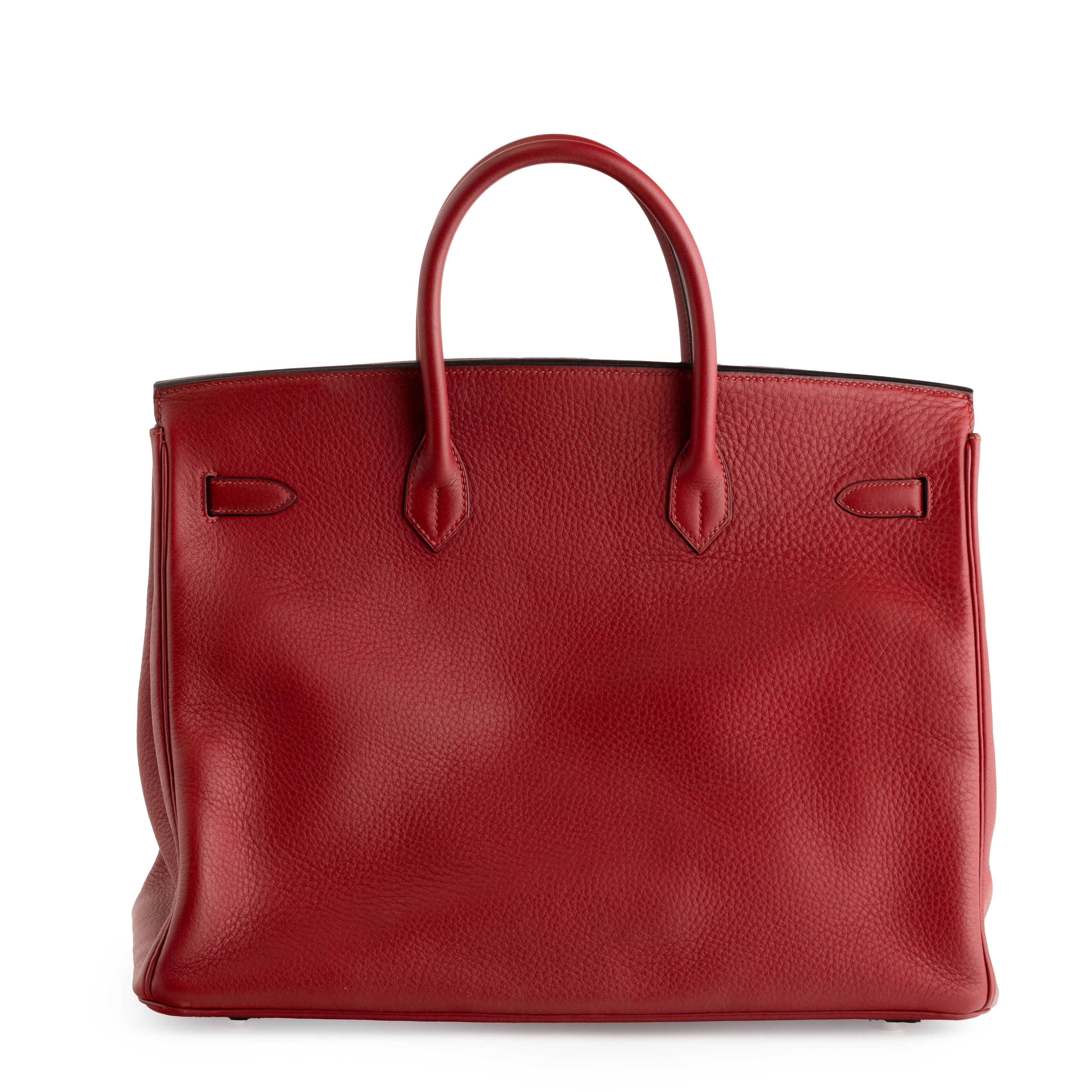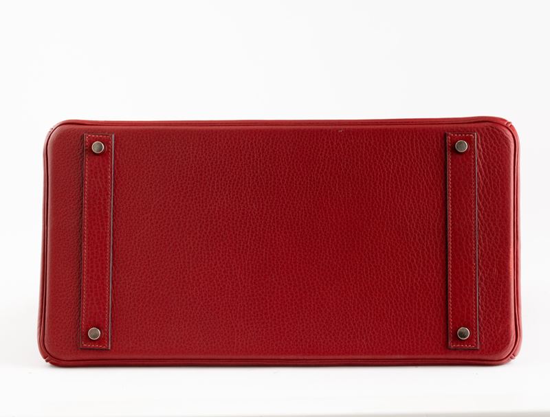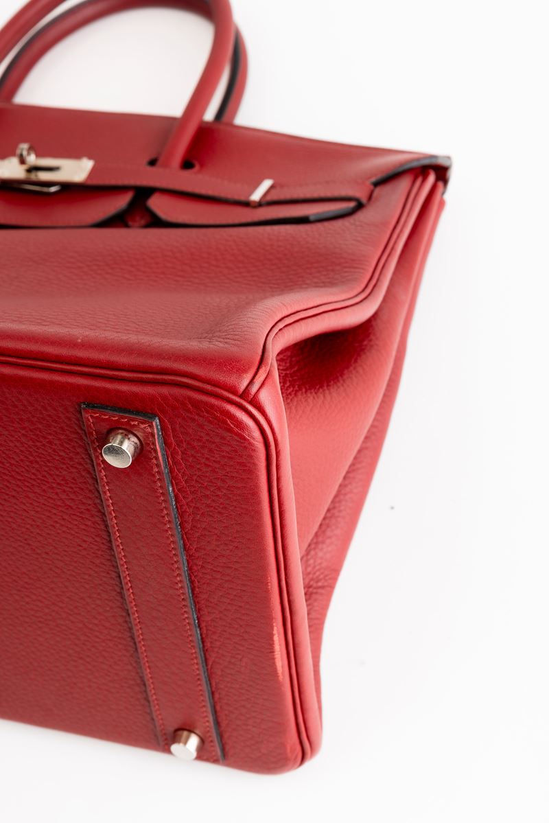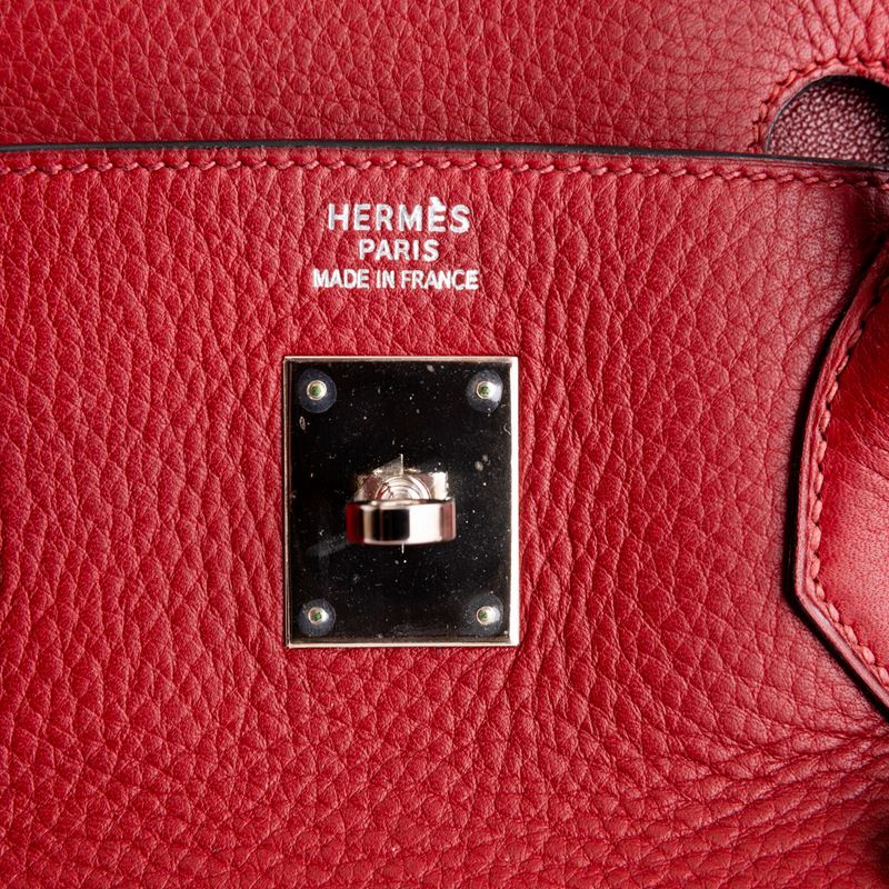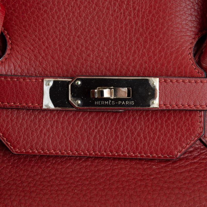 In pelle togo colore rouge H e hardware palladio.