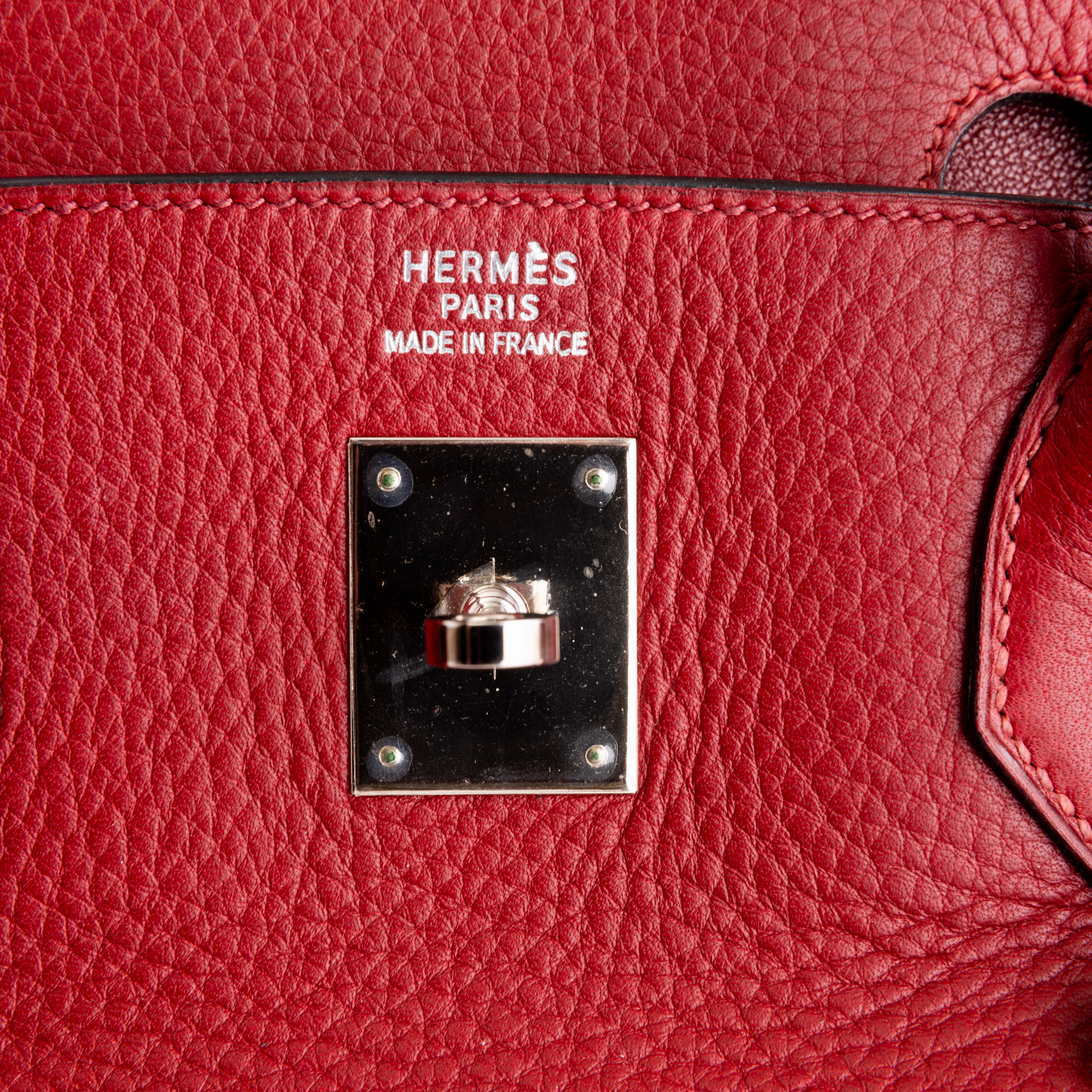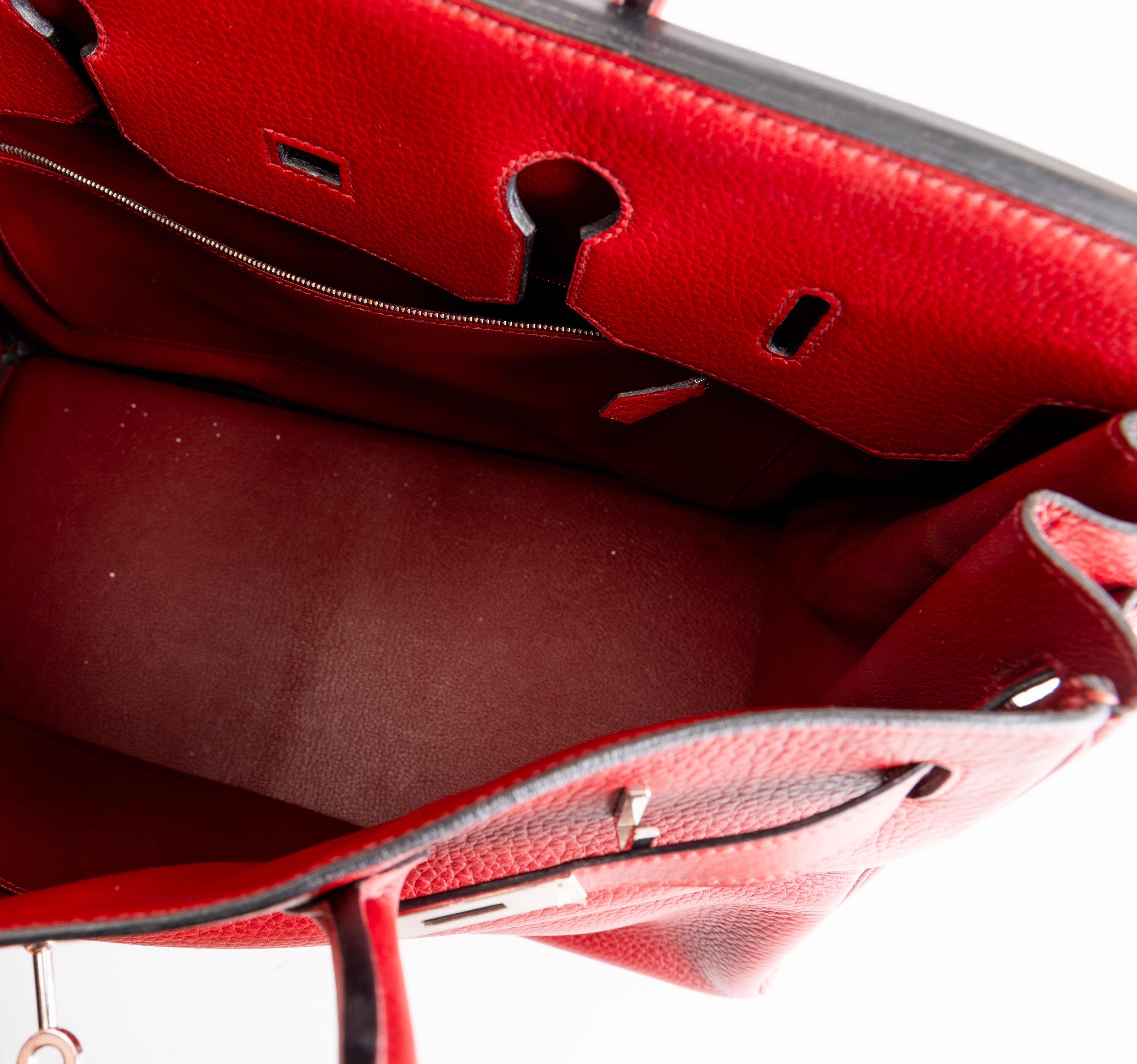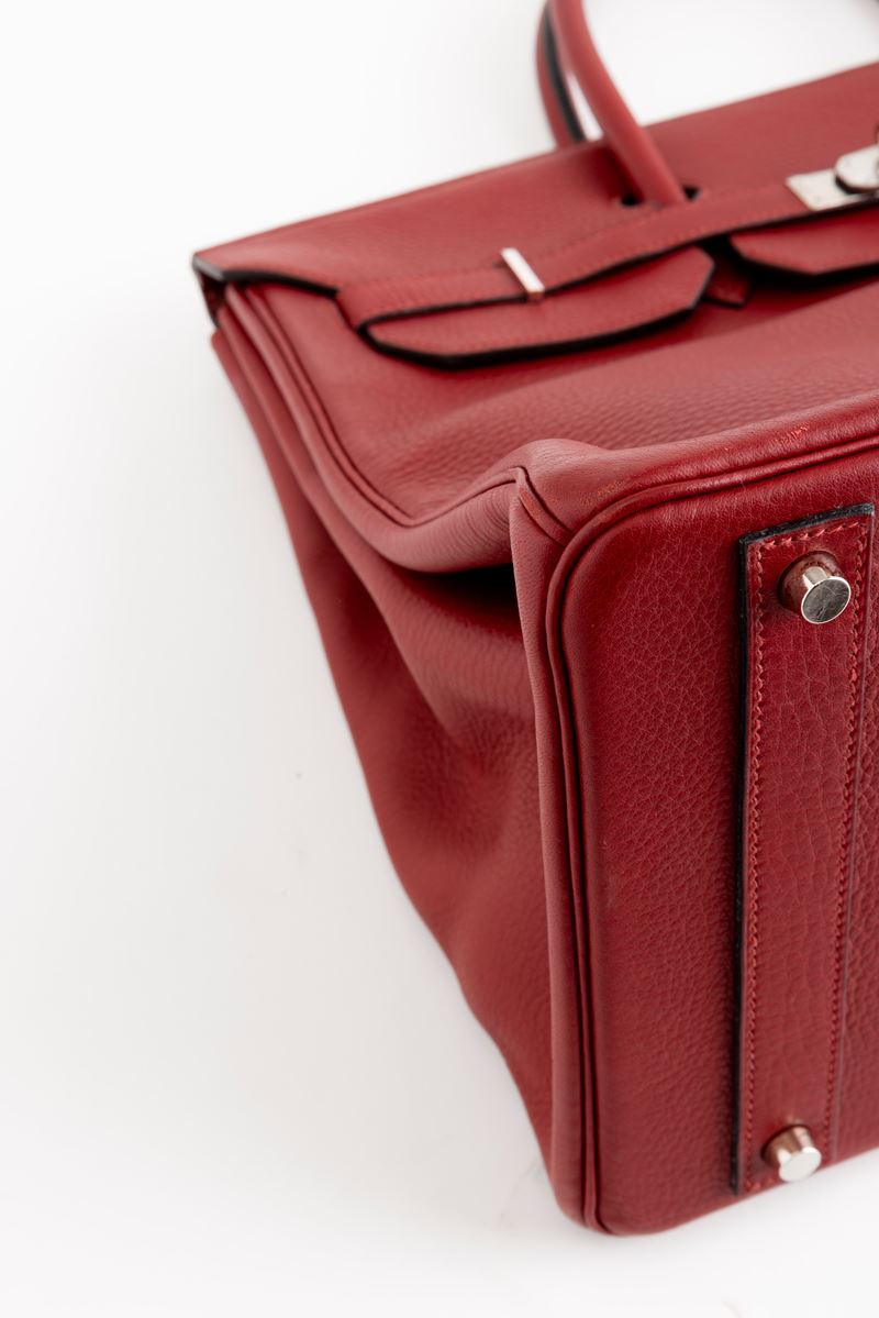 In pelle togo colore rouge H e hardware palladio.