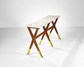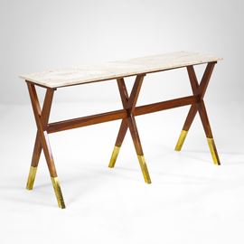Struttura in legno con piano in marmo. Puntali in ottone.