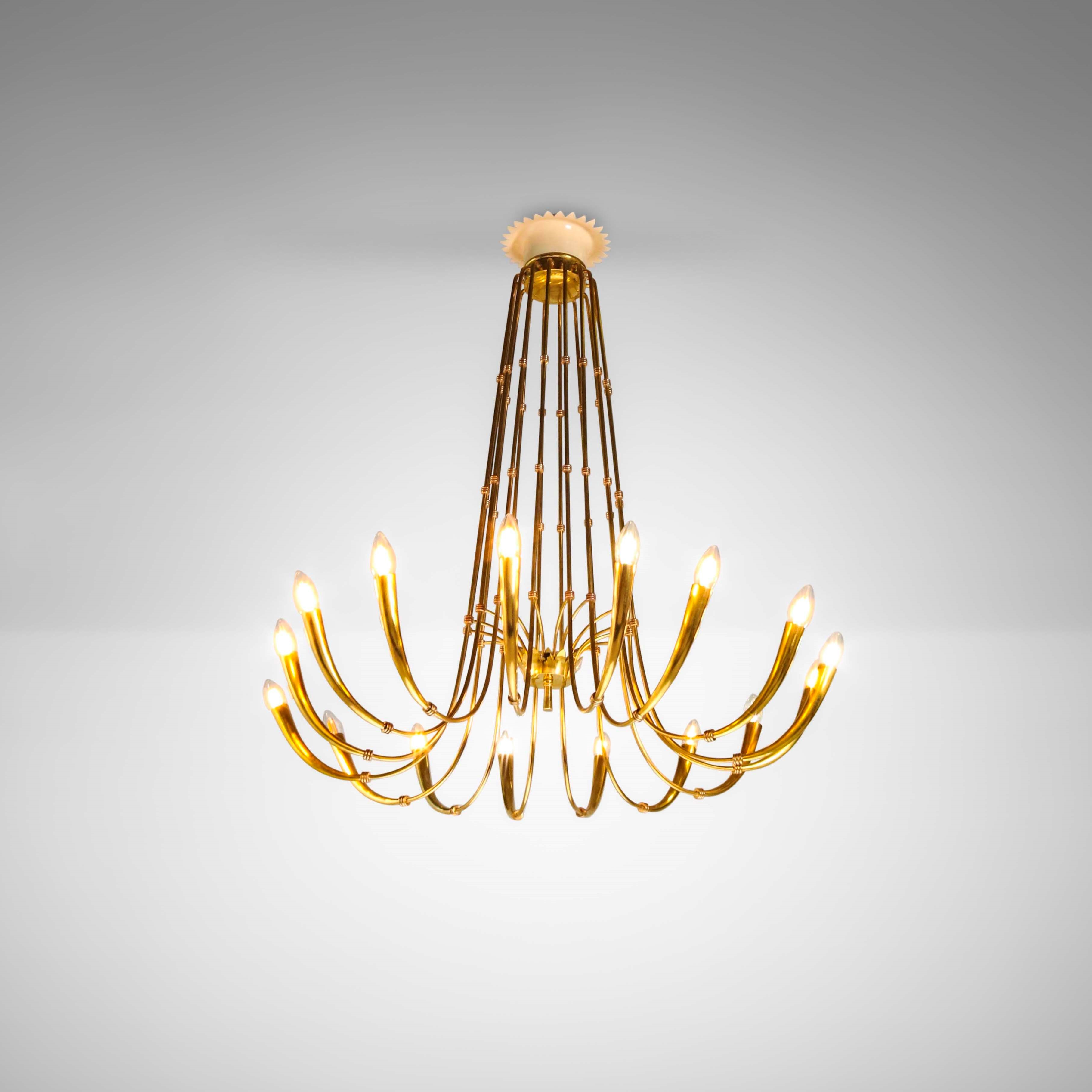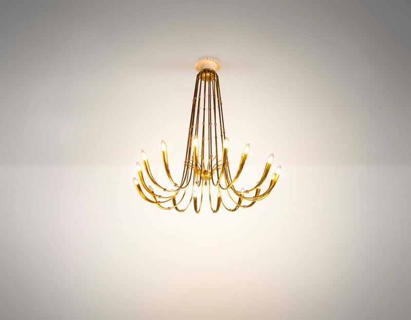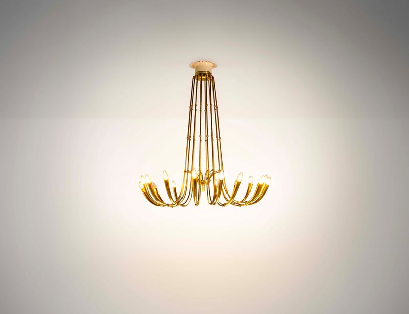 Struttura in ottone e metallo laccato.