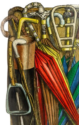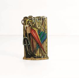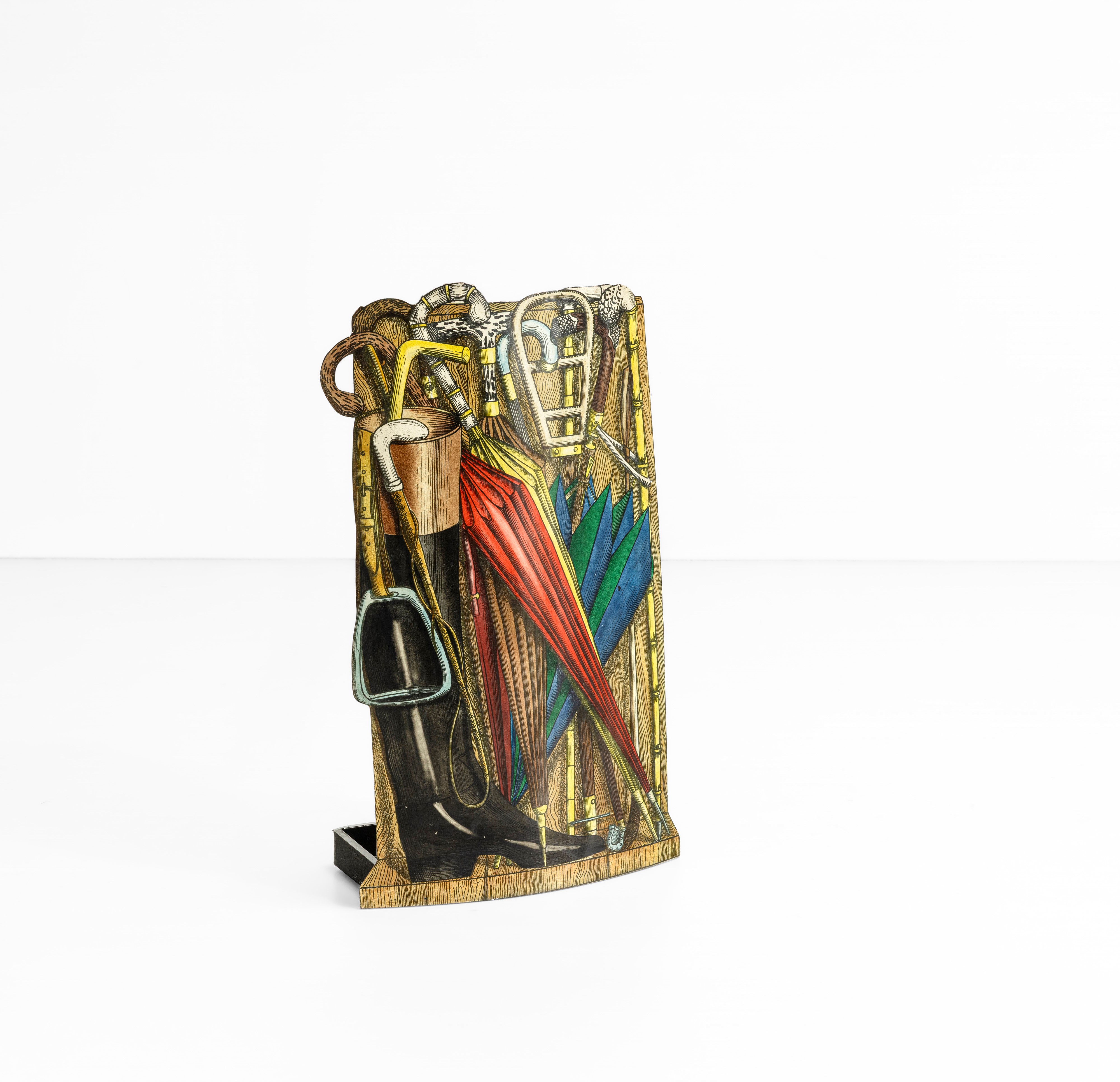 Struttura in metallo e metallo serigrafato con decoro mod. Ombrelli.