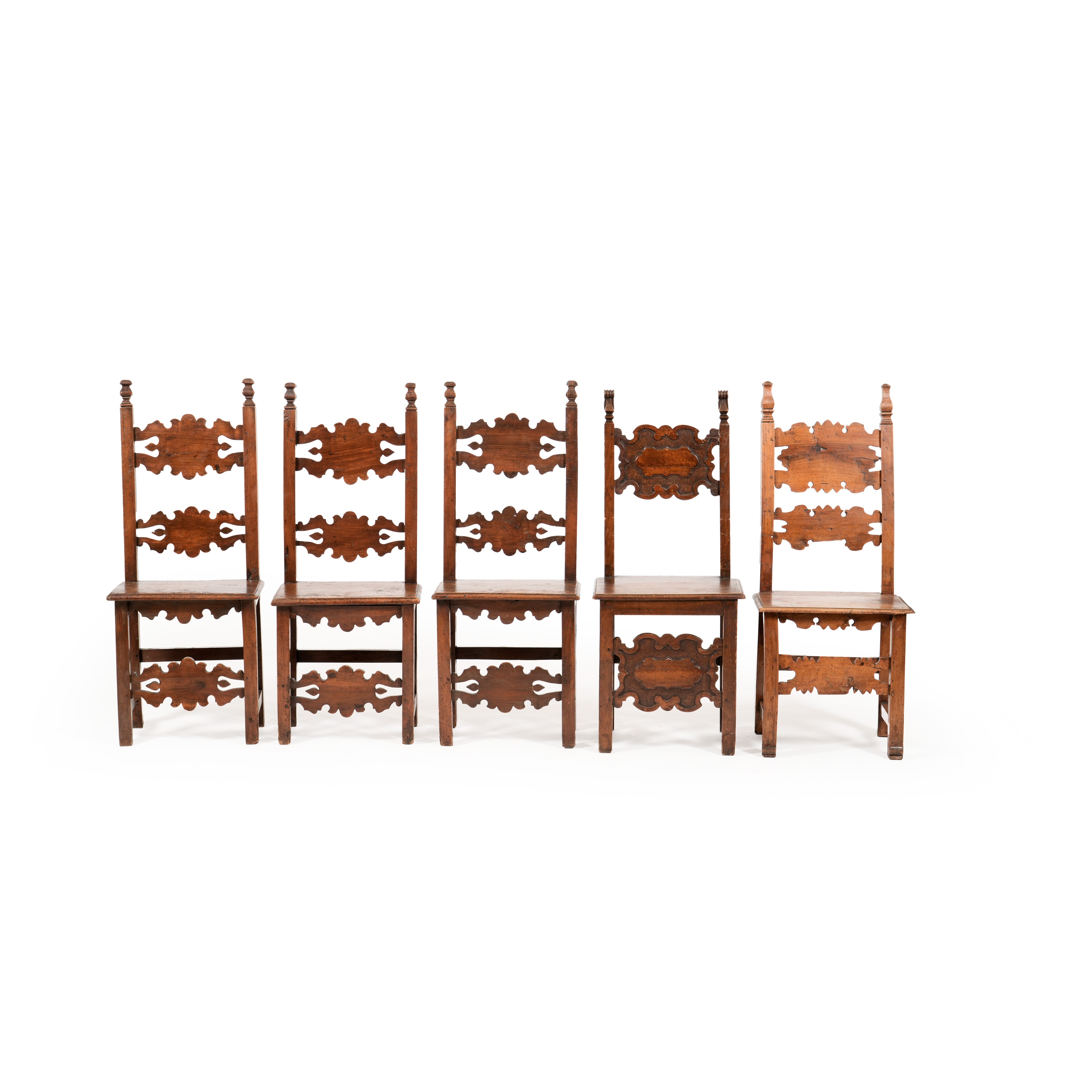 Cinque sedie diverse in noce