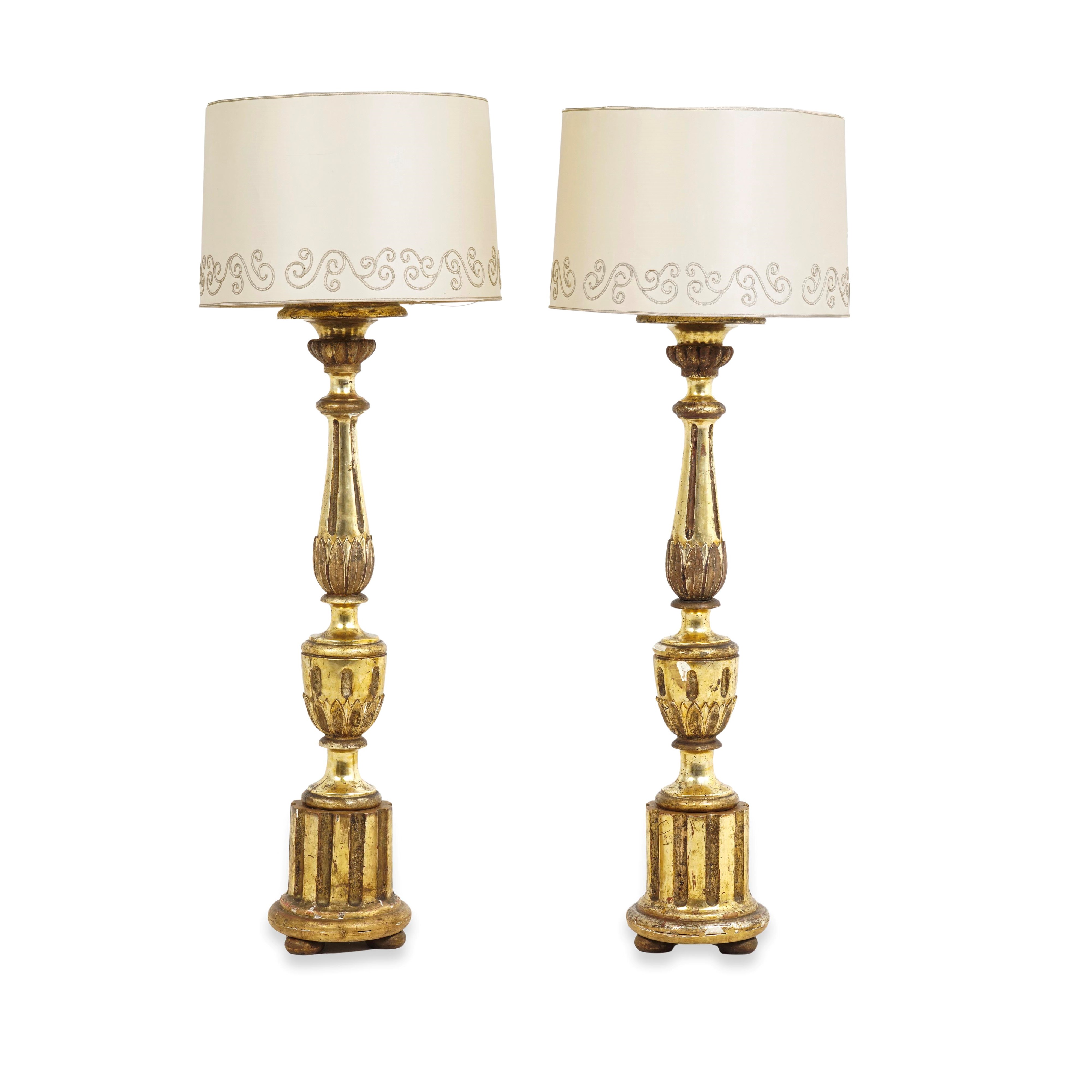 Coppia di torciere in legno intagliato e dorato. XVIII-XIX secolo