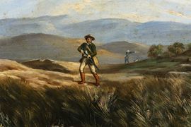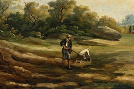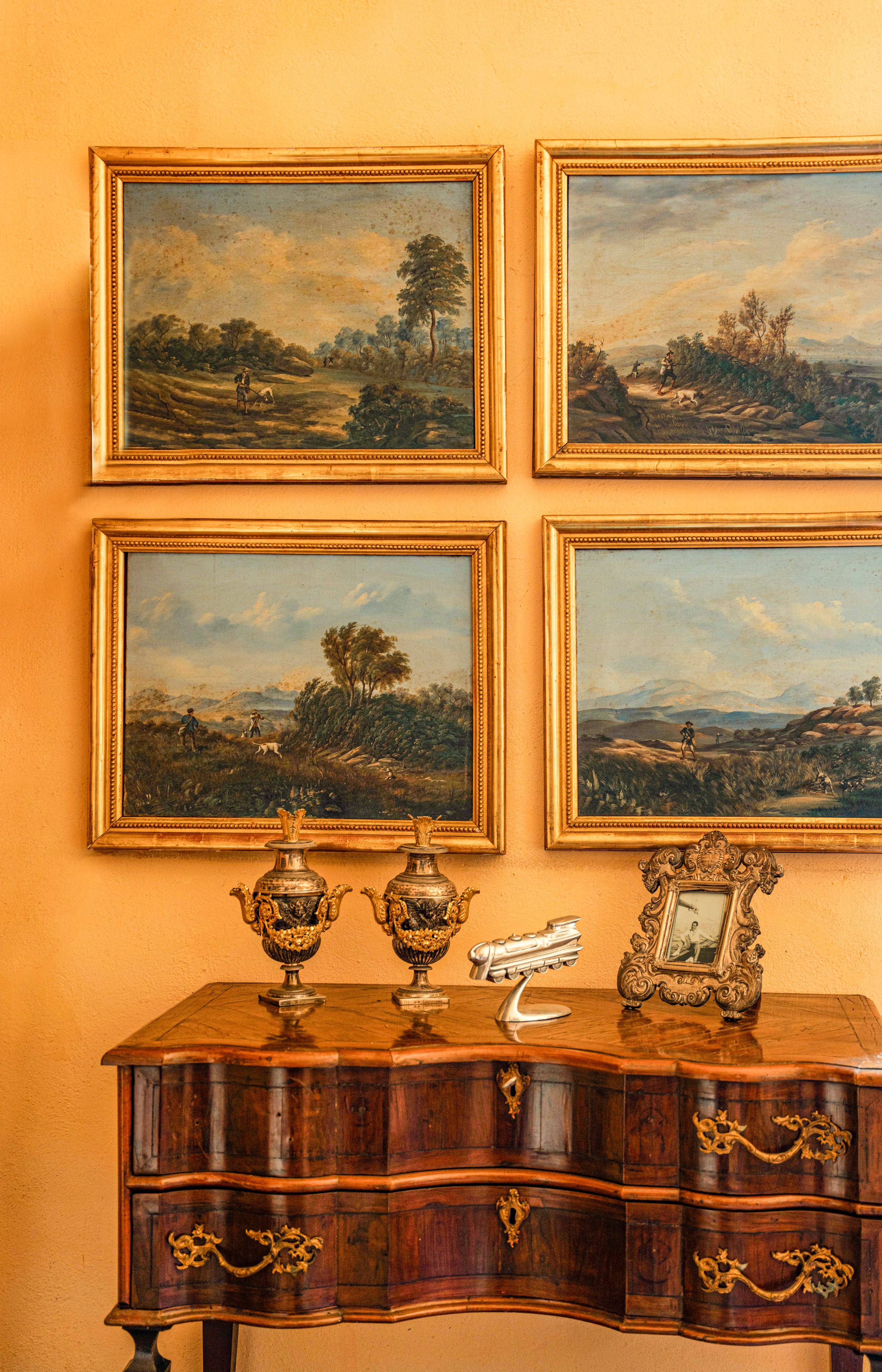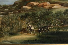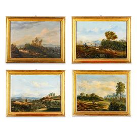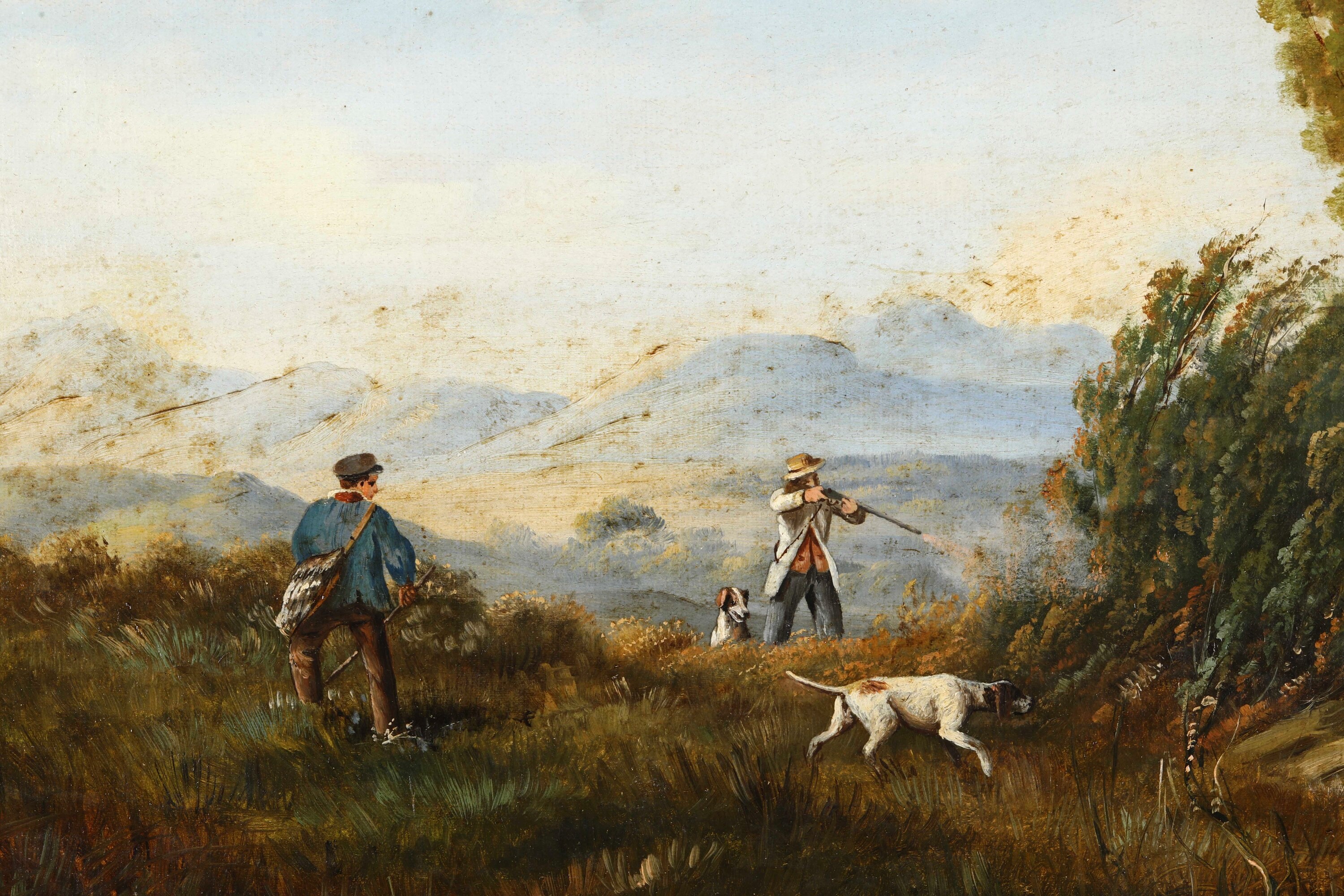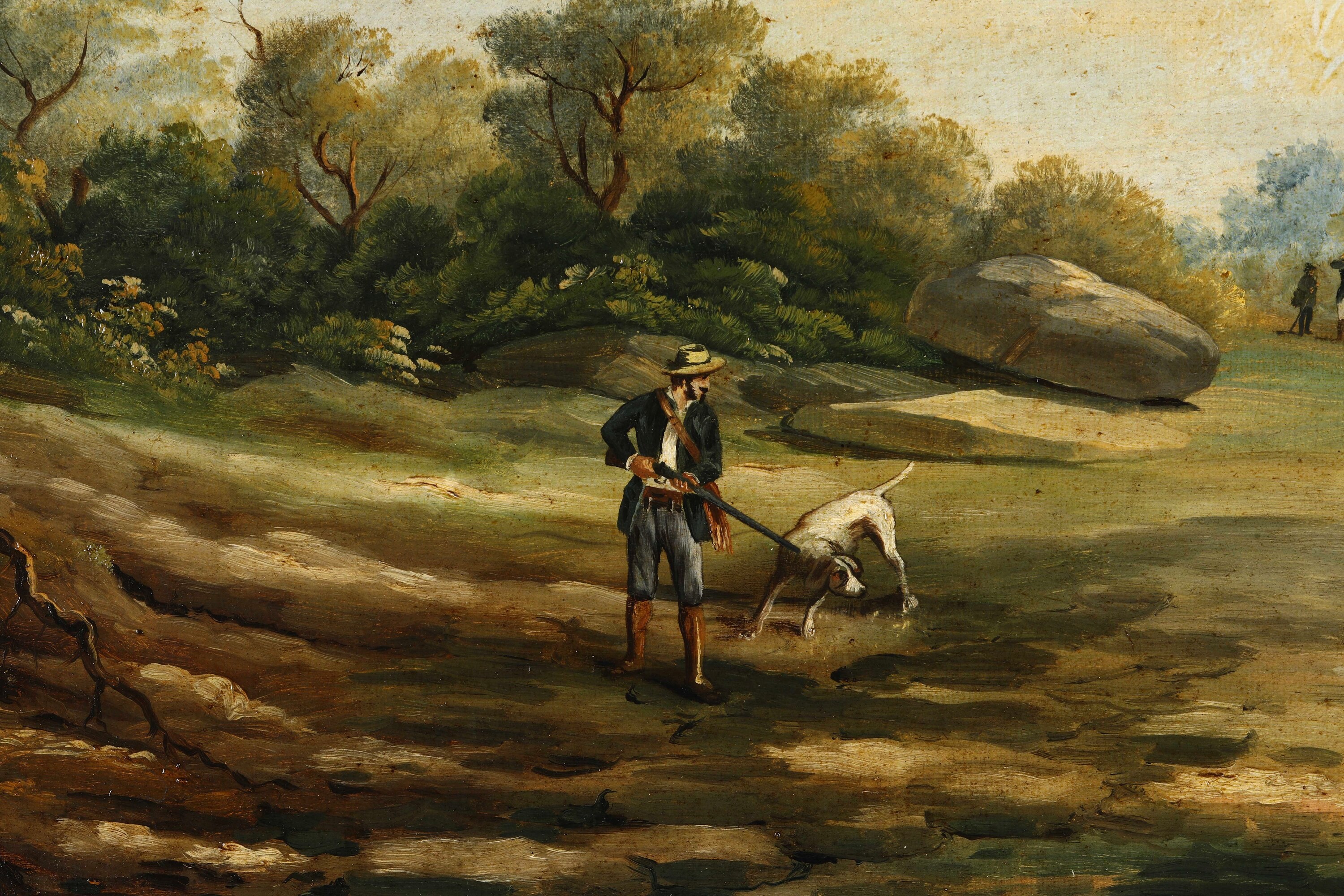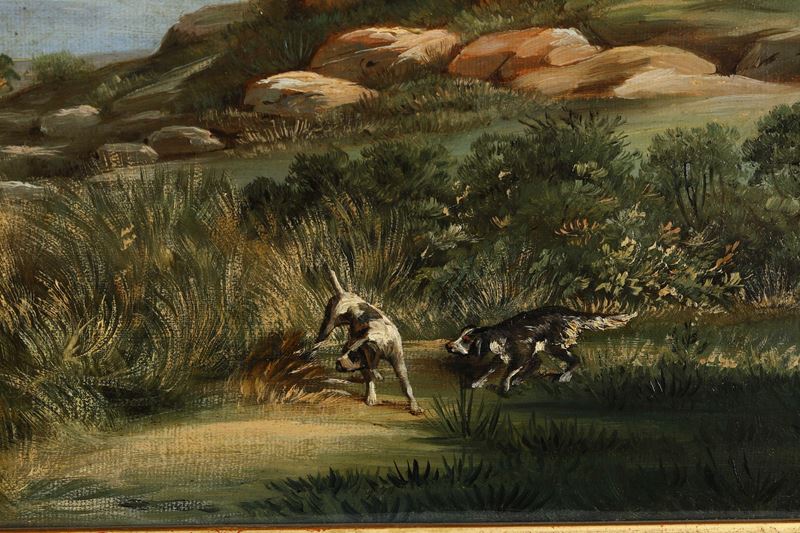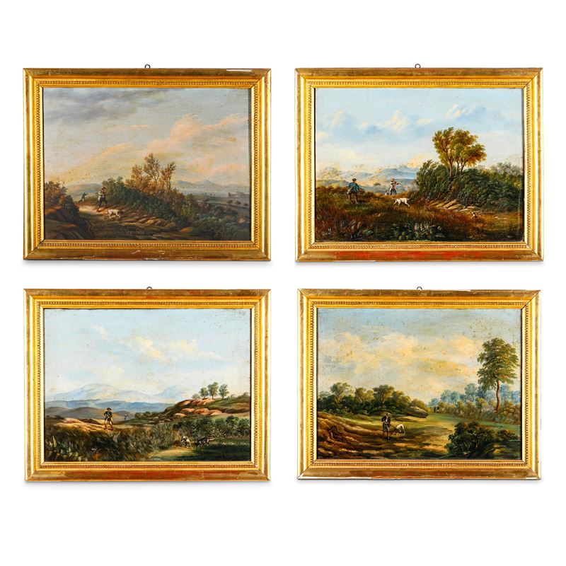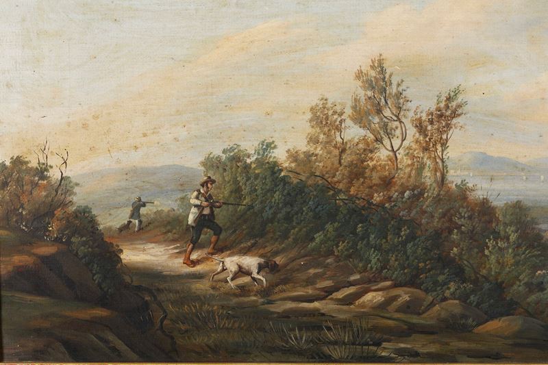 Pittore del XIX secolo Paesaggi con scene di caccia