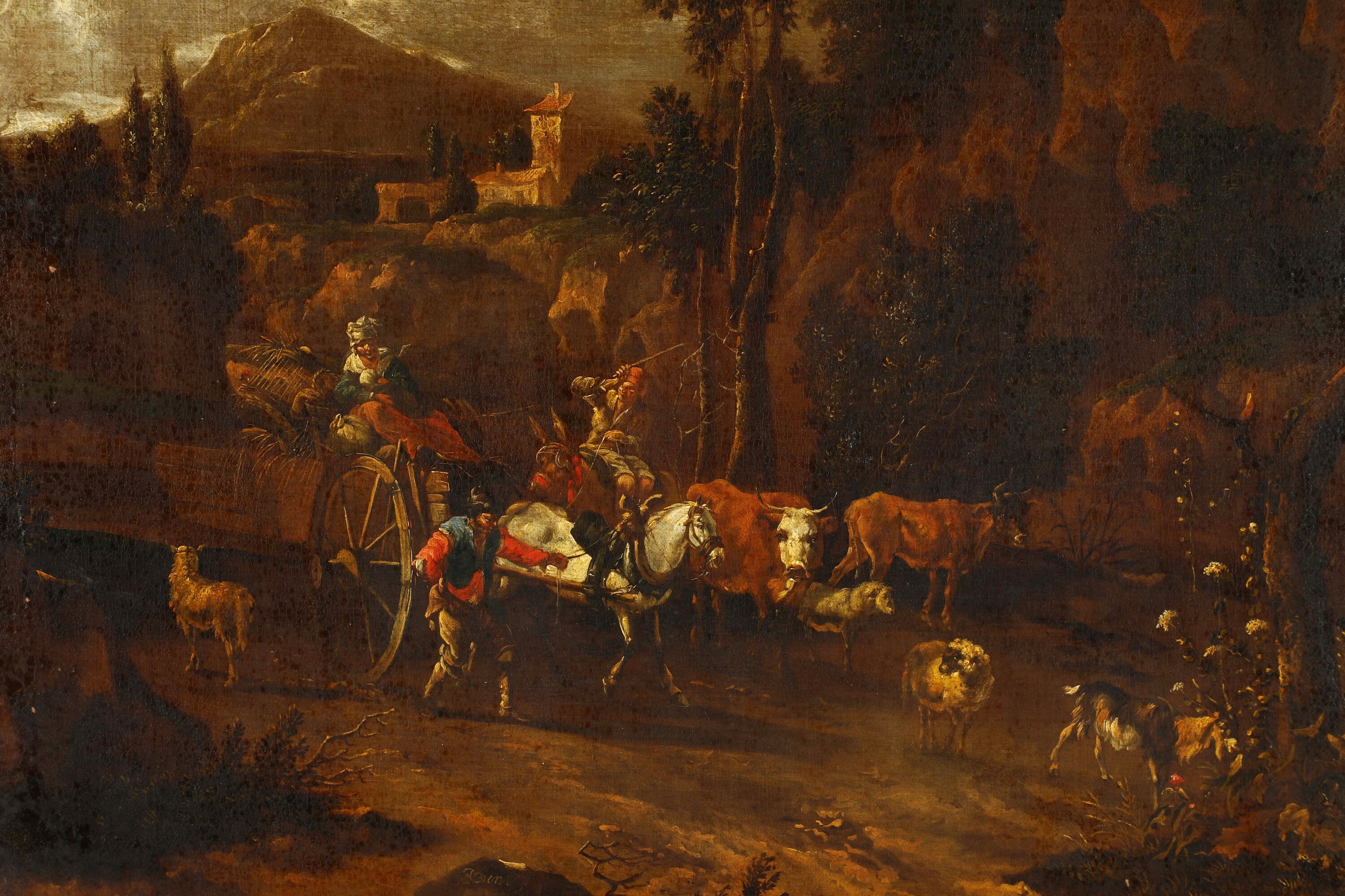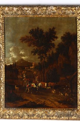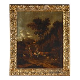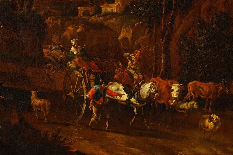Scuola fiamminga della fine del XVII secolo Scena di genere con contadini e armenti