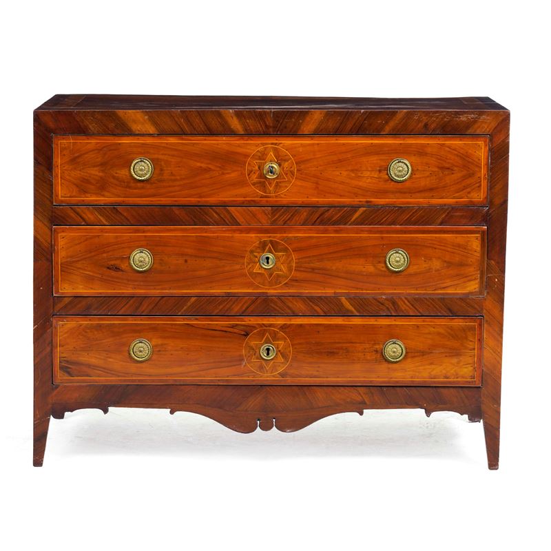 Cassettone in noce con intarsi. Napoli, fine XVIII, inizi XIX secolo