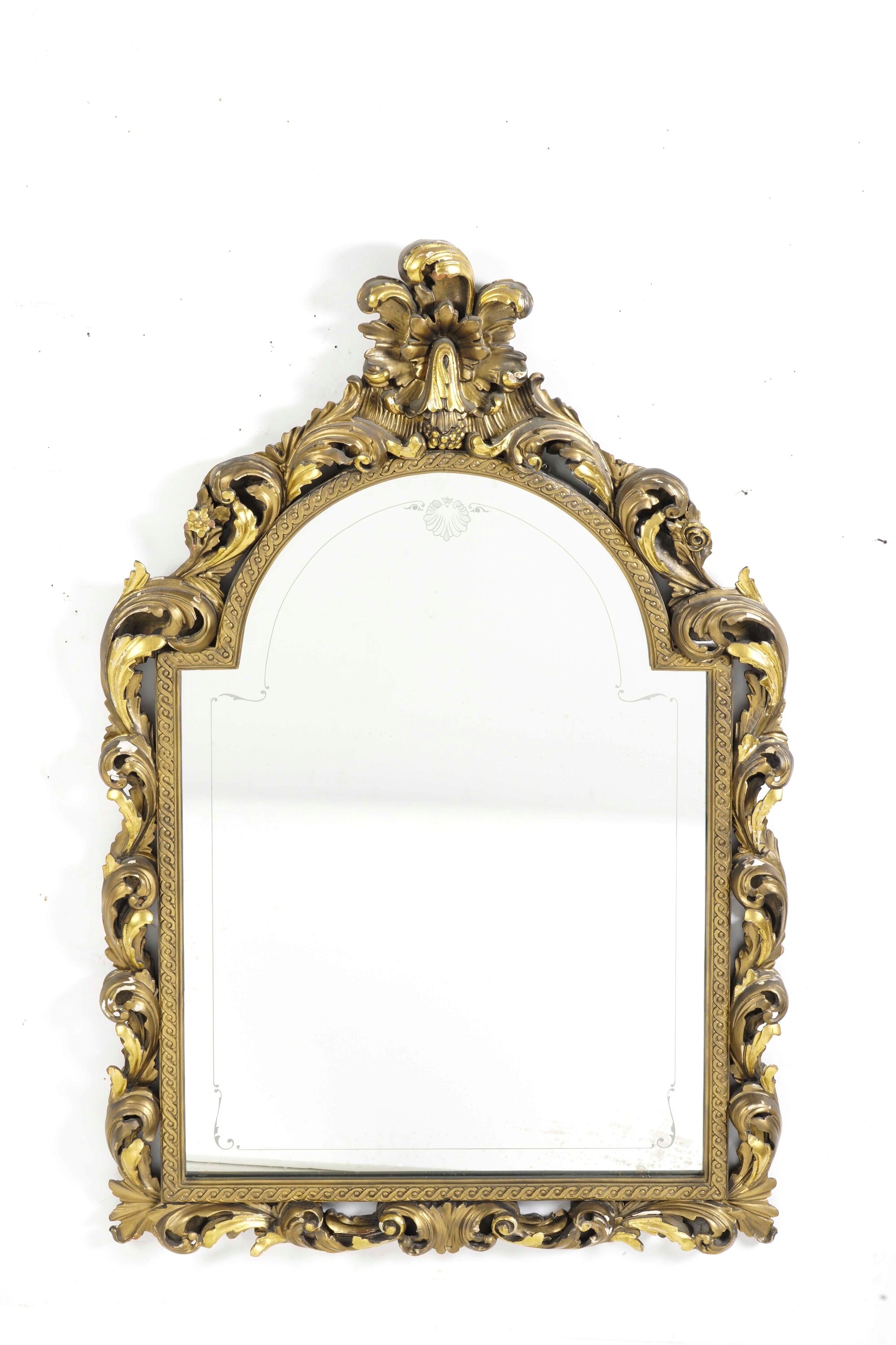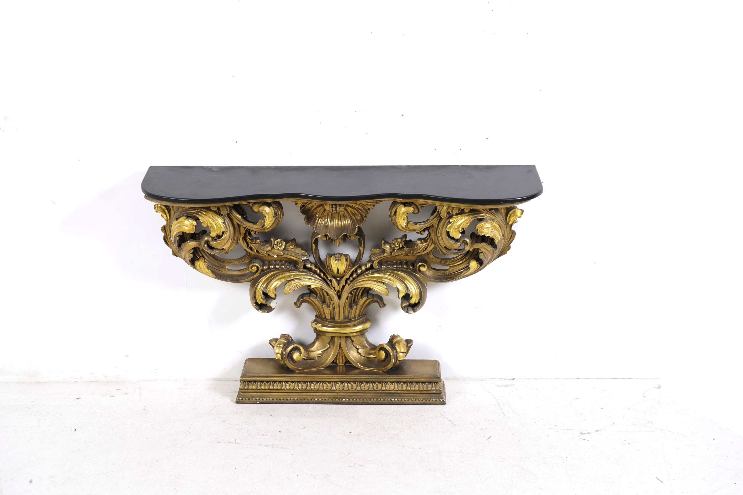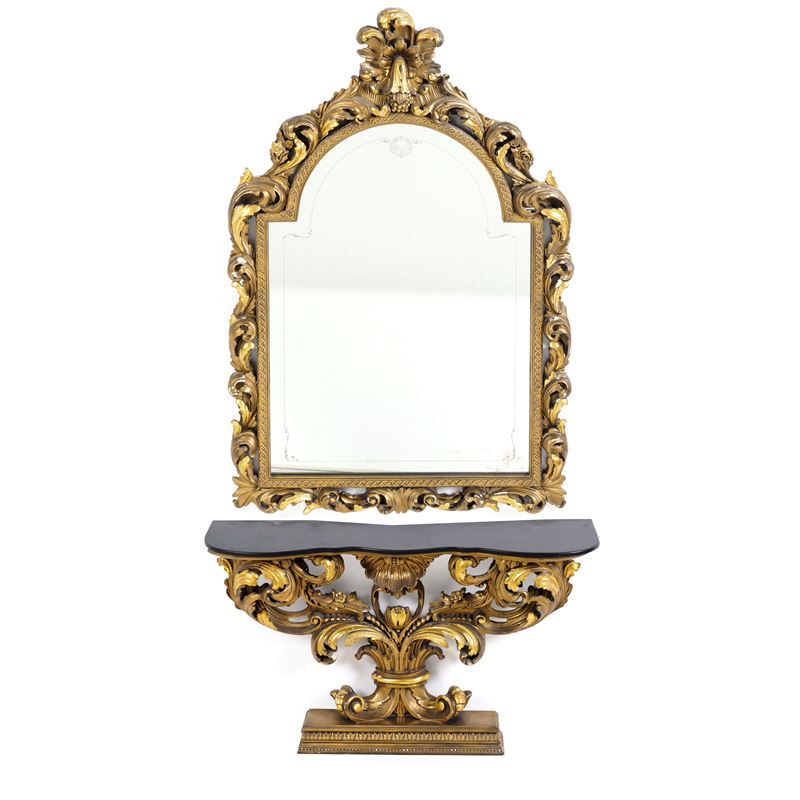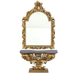 Consolle con specchiera in legno intagliato e dorato. XIX-XX secolo