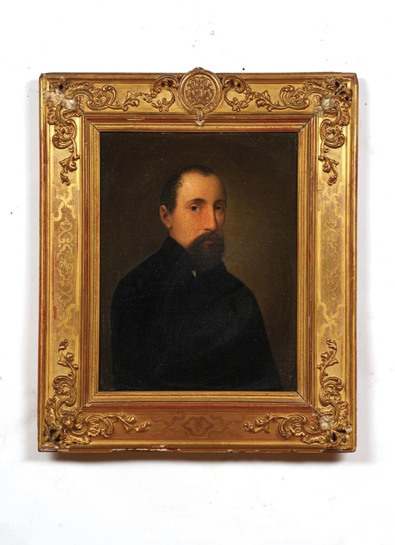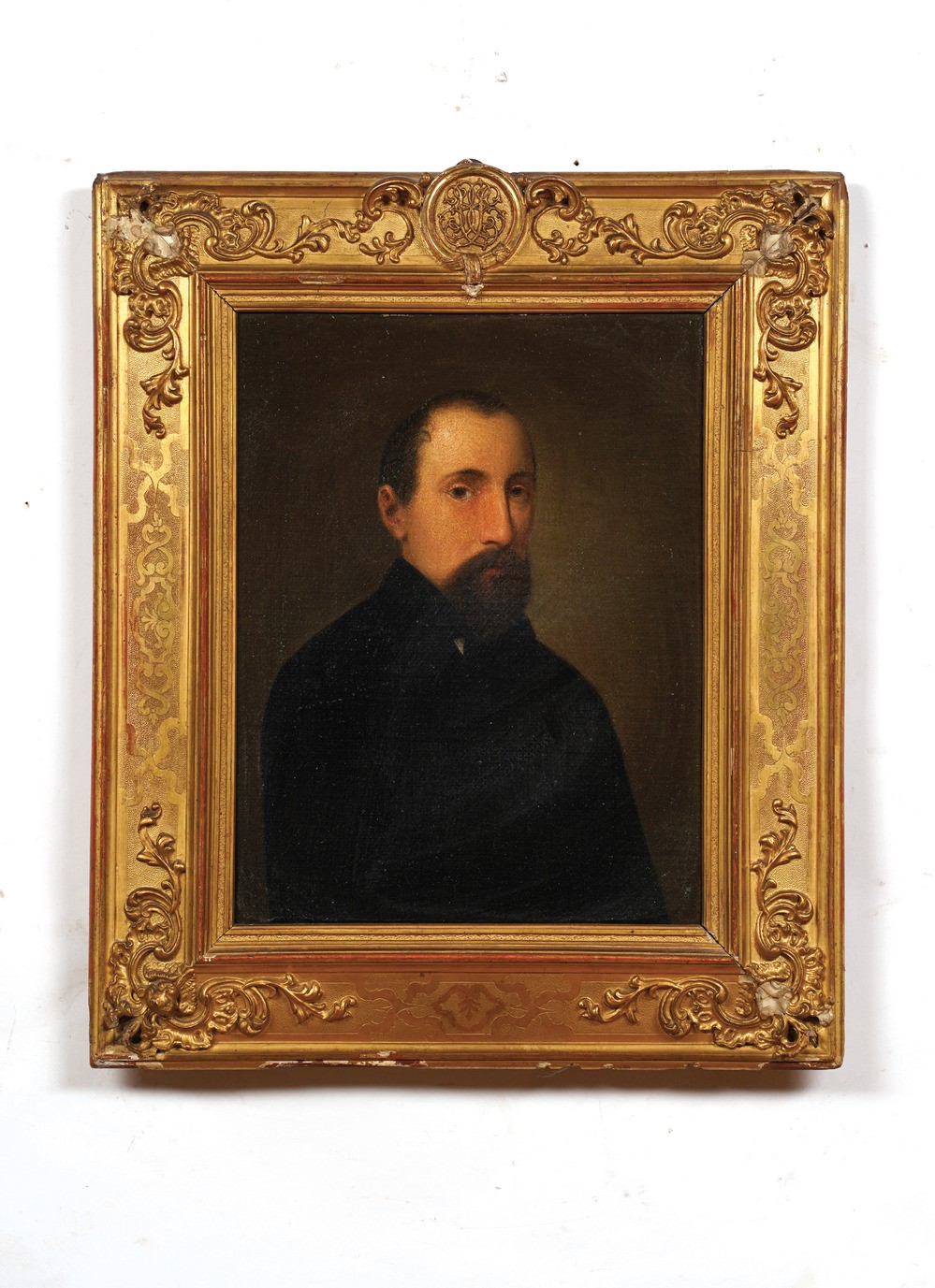 Coppia di cornici da appoggio con ritratto di gentiluomo e gentildonna. XIX secolo