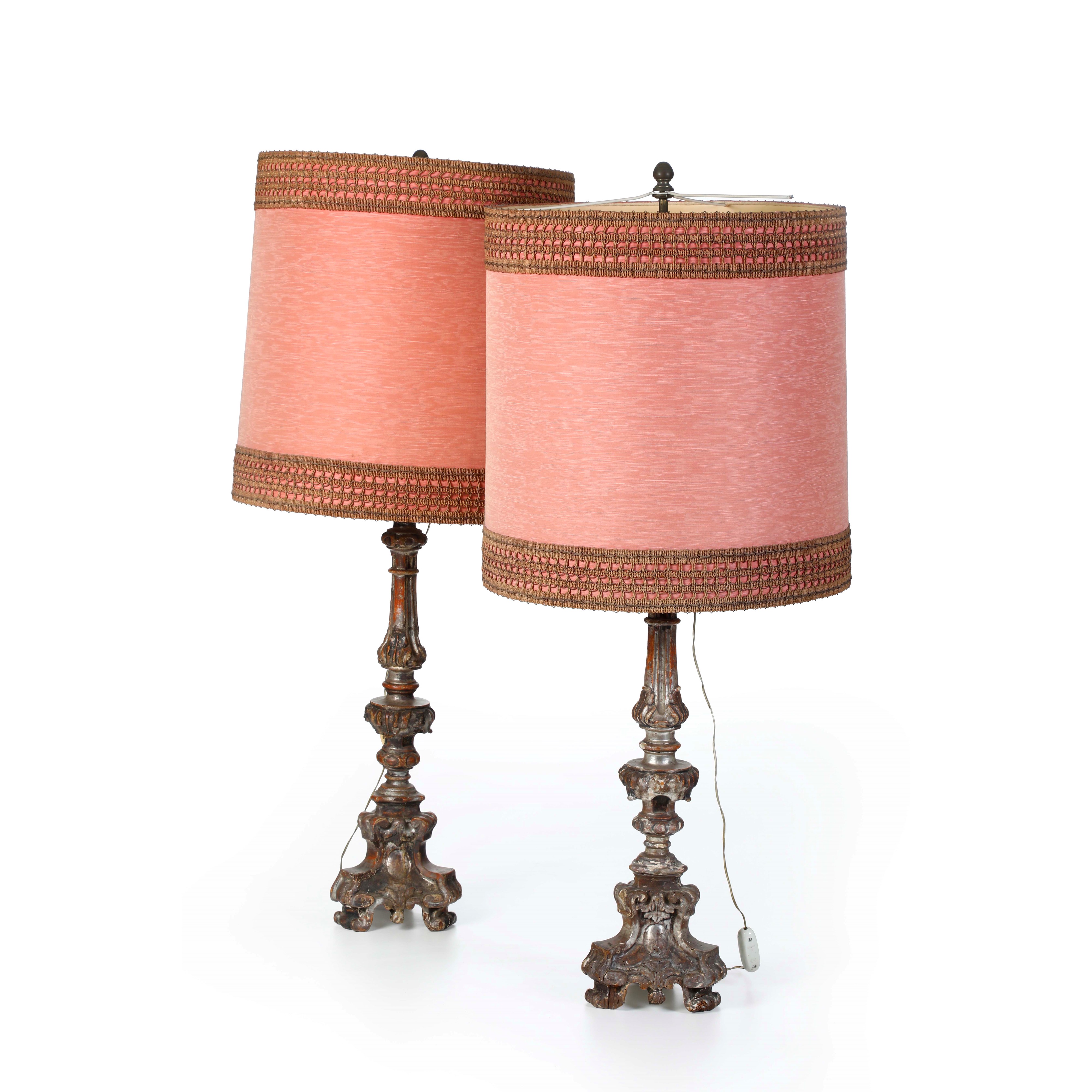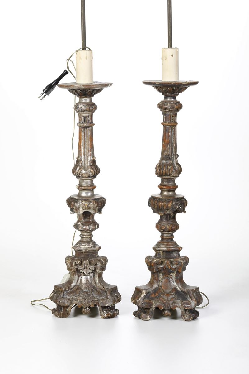 Coppia di portaceri in legno intagliato. XVIII-XIX secolo