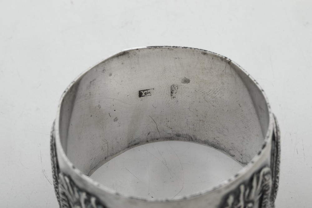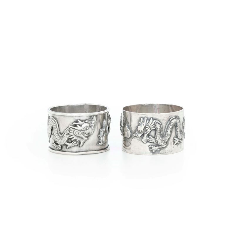 Coppia di portatovaglioli in argento con decoro di draghi, Cina, XX secolo