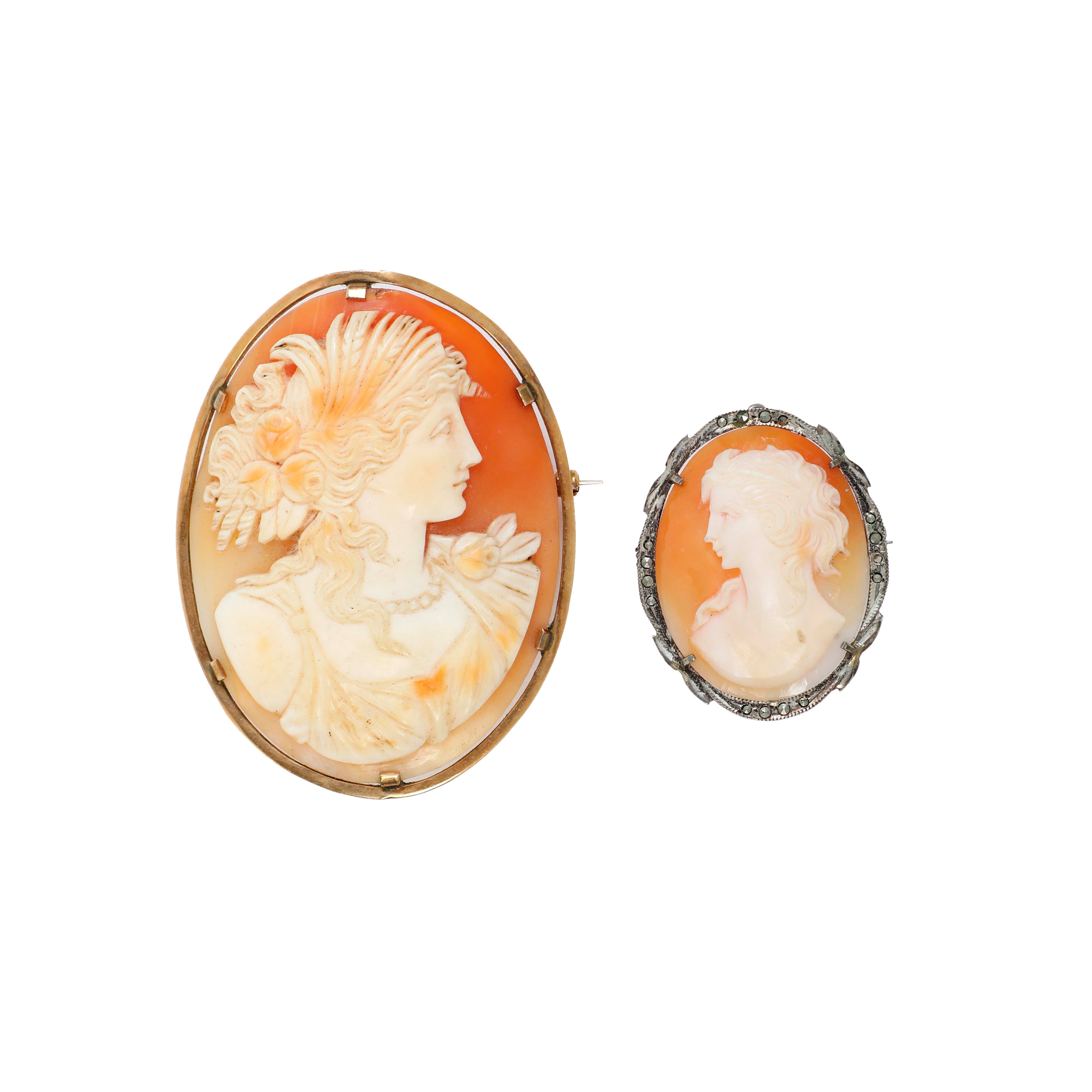 Due cammei con profilo muliebre Uno con cornice d'oro e uno con cornice in argento