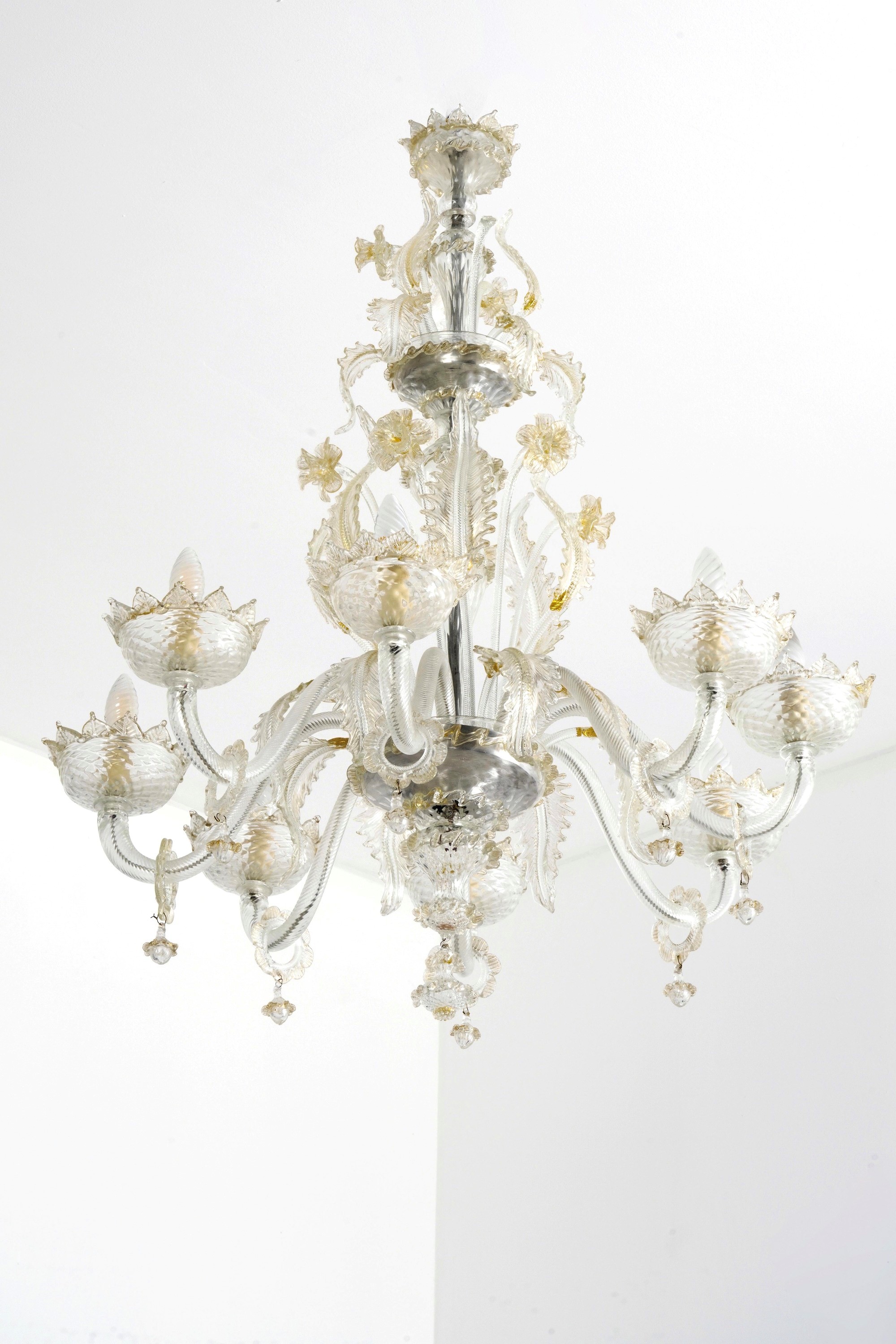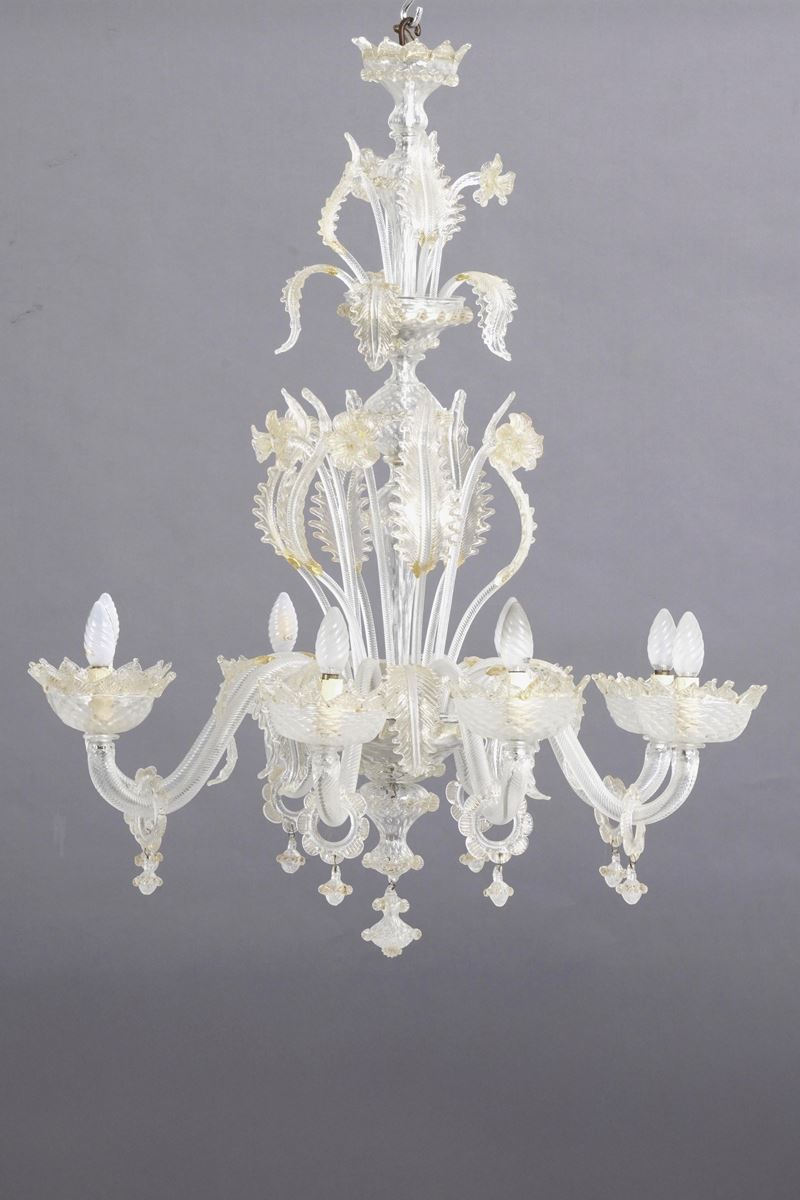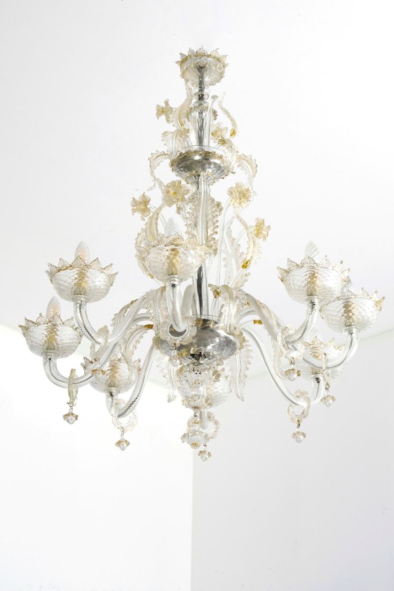 Lampadario in vetro di Murano a otto luci. XX secolo