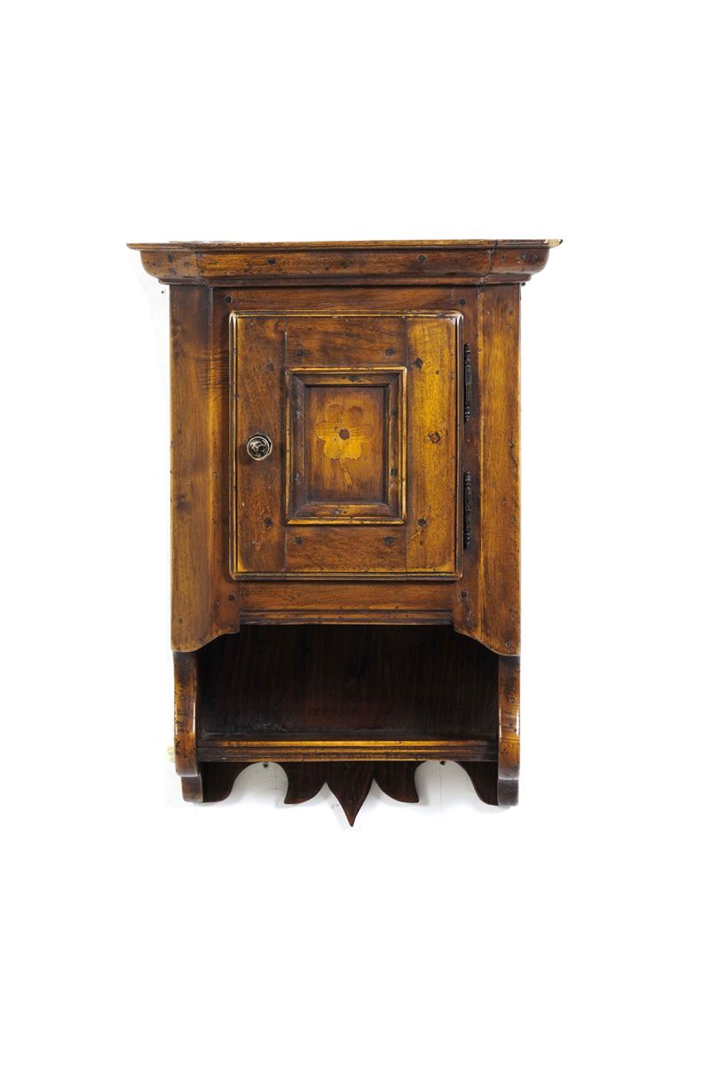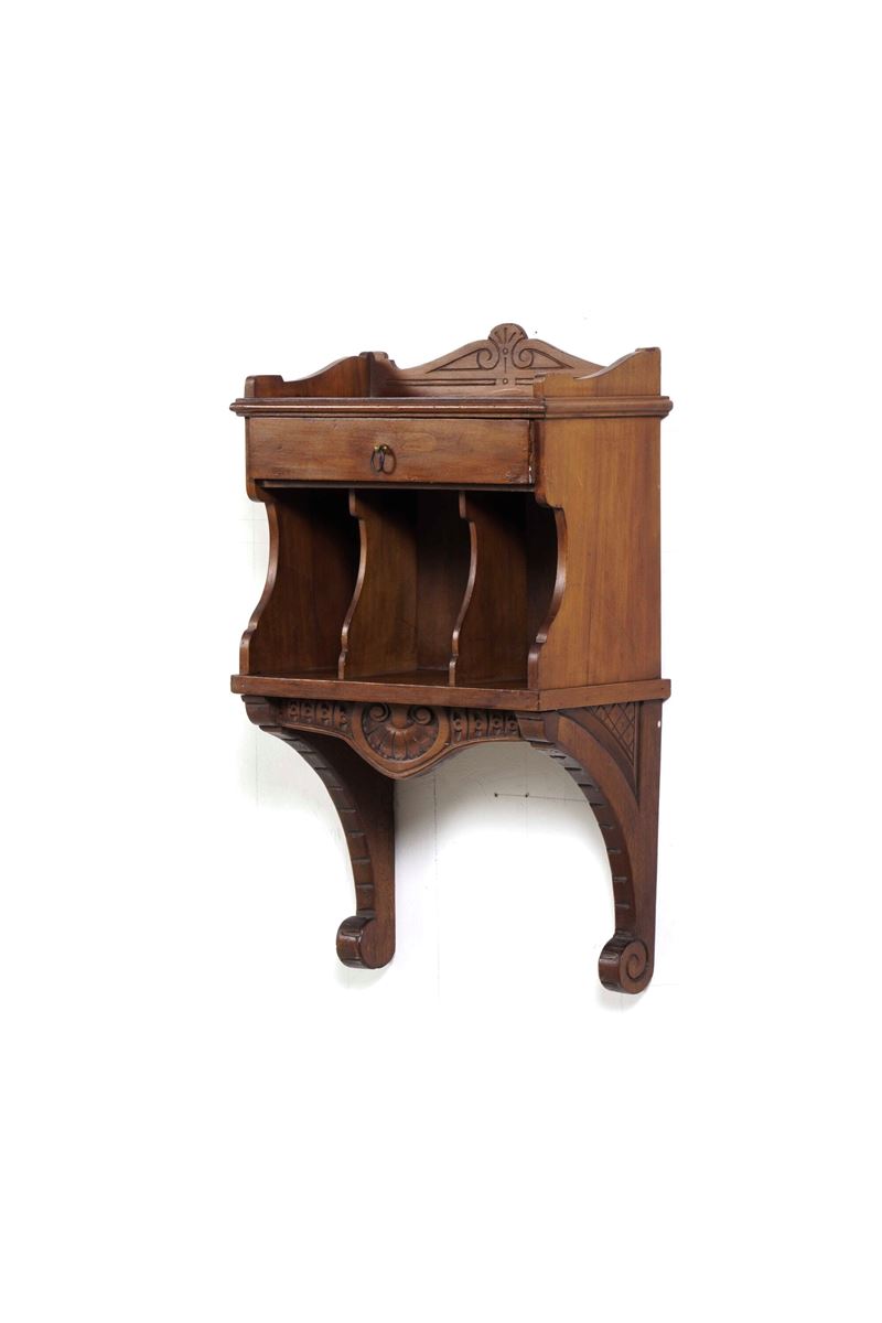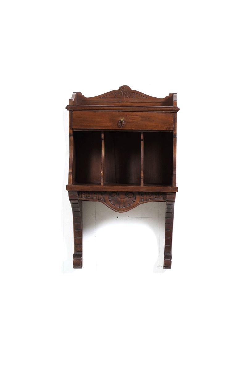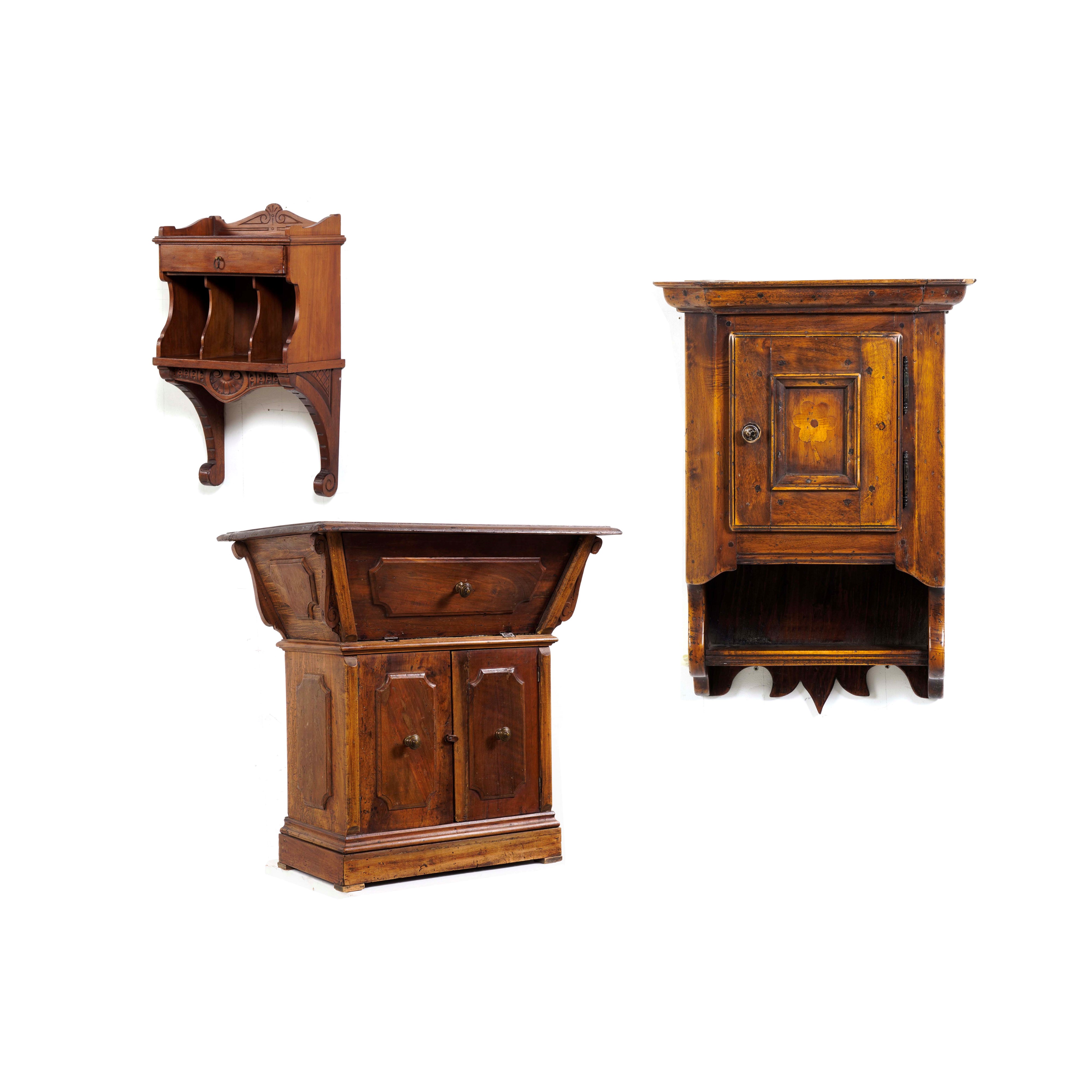 Lotto composto da un comodino e due mobili pensili da ingresso in legno