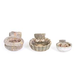 Lotto di tre acquasantiere in marmi diversi. Epoche diverse