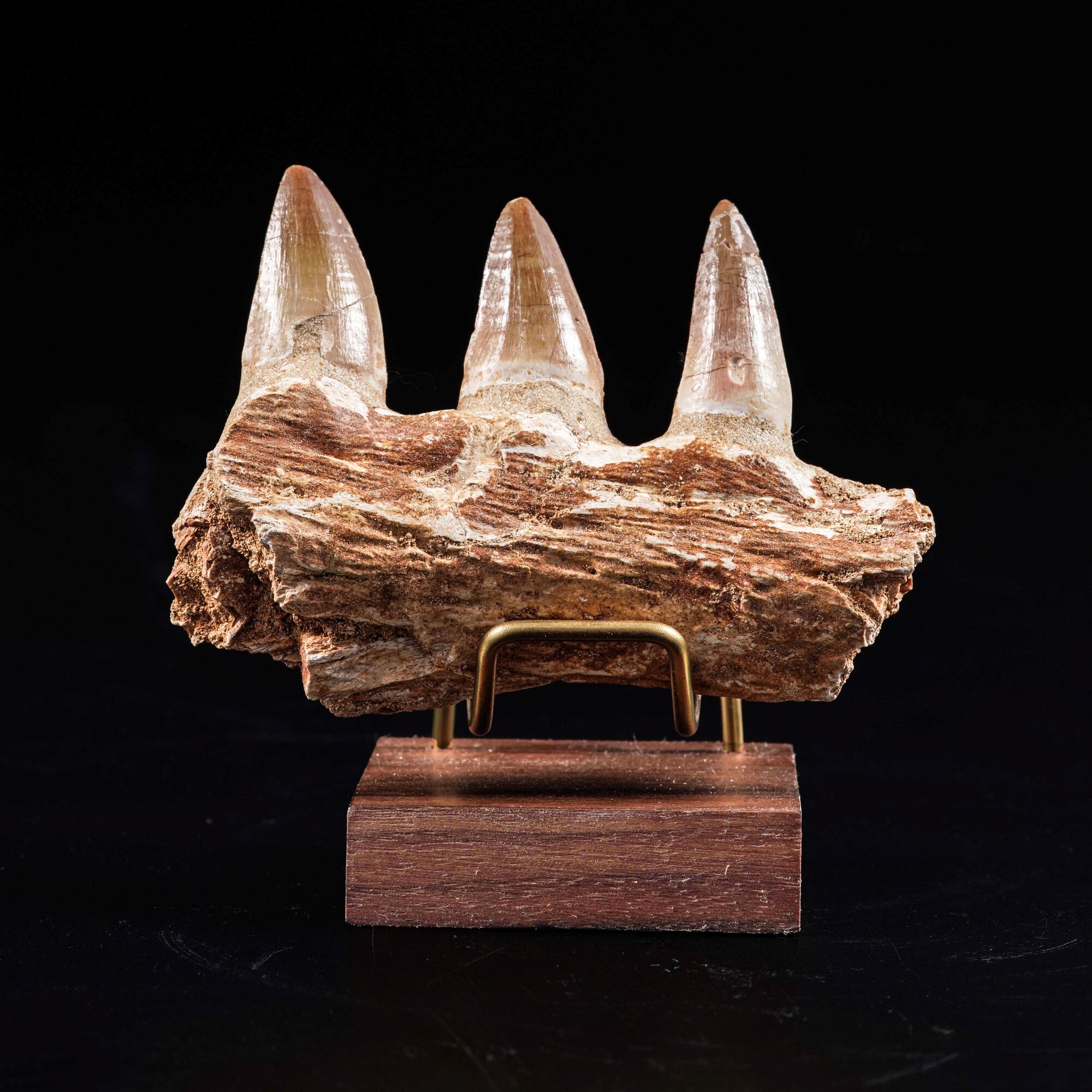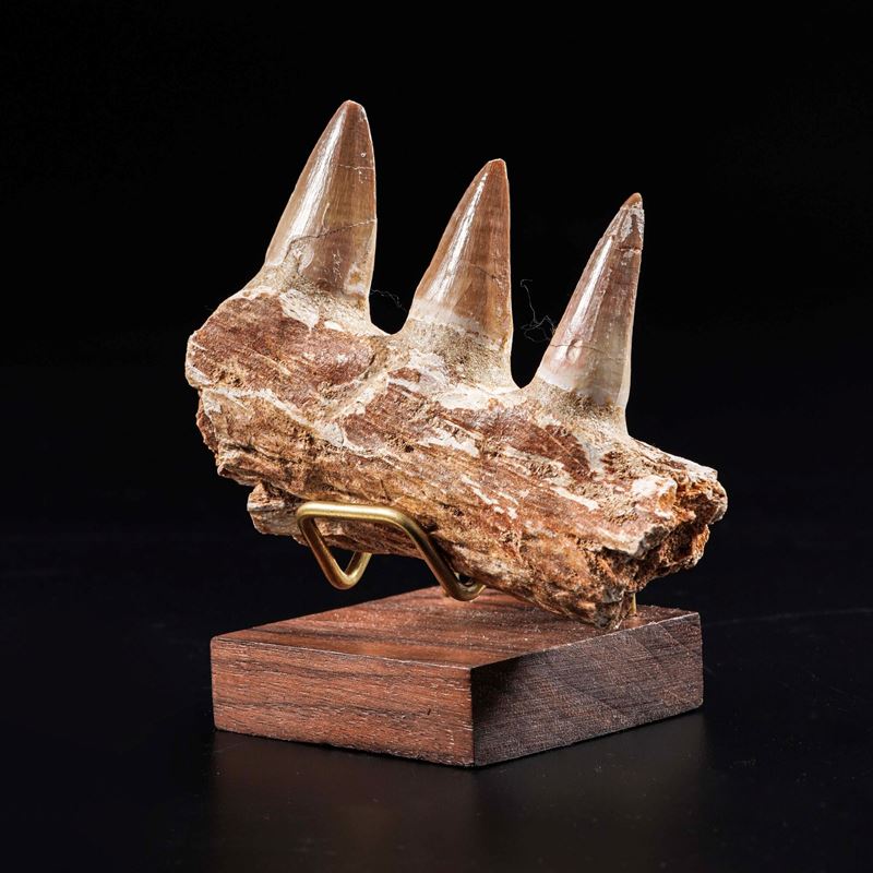 Mascella di Mosasauro sp. con tre grandi denti Cretaceo (145-66 milioni di anni)