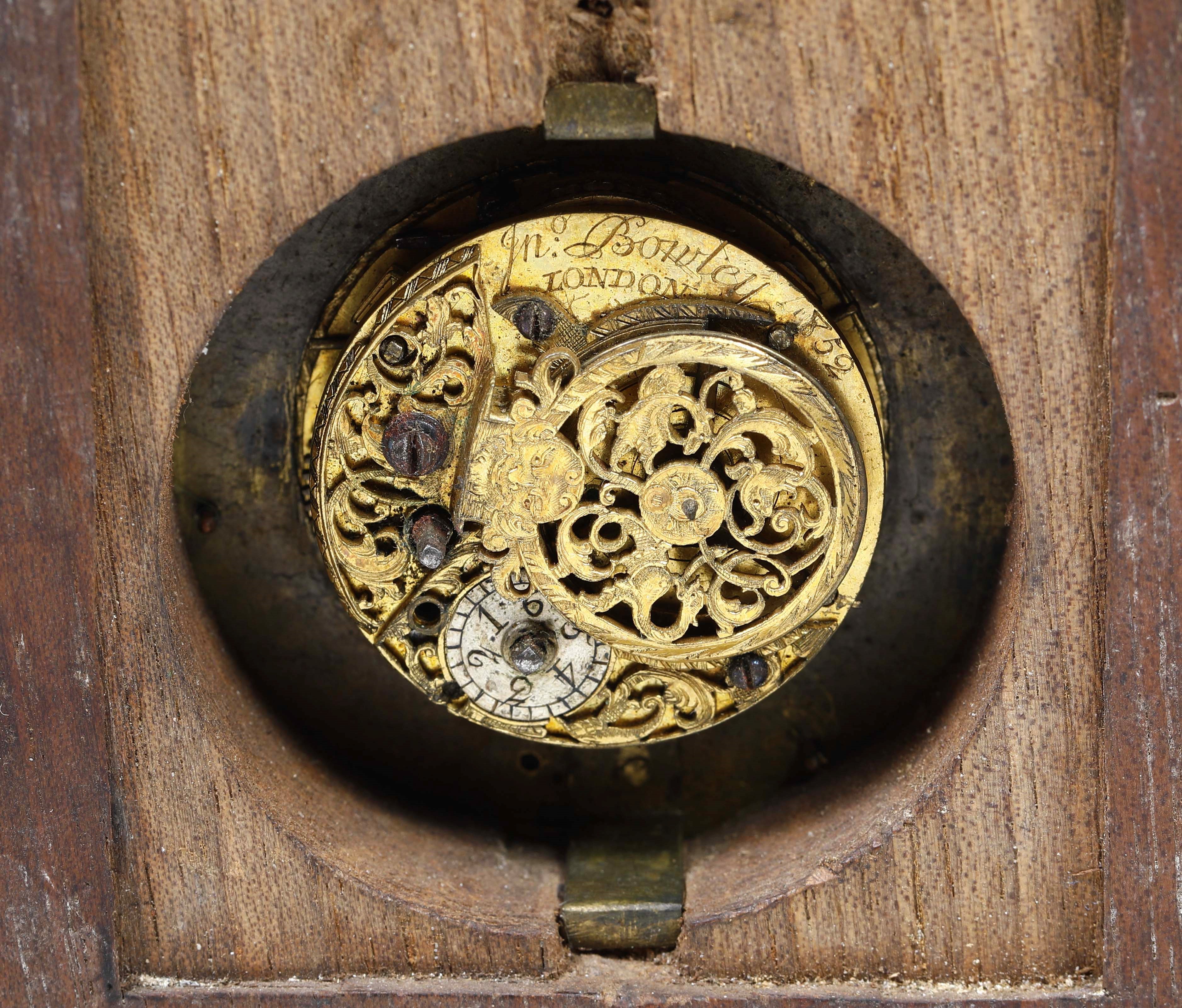 Orologio da parete in legno con quadrante in porcellana. Movimento firmato In. Bonvley London 1852