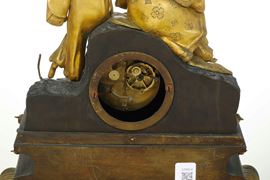 Pendola da tavolo in bronzo brunito e bronzo dorato. Fine XIX-inizi XX secolo