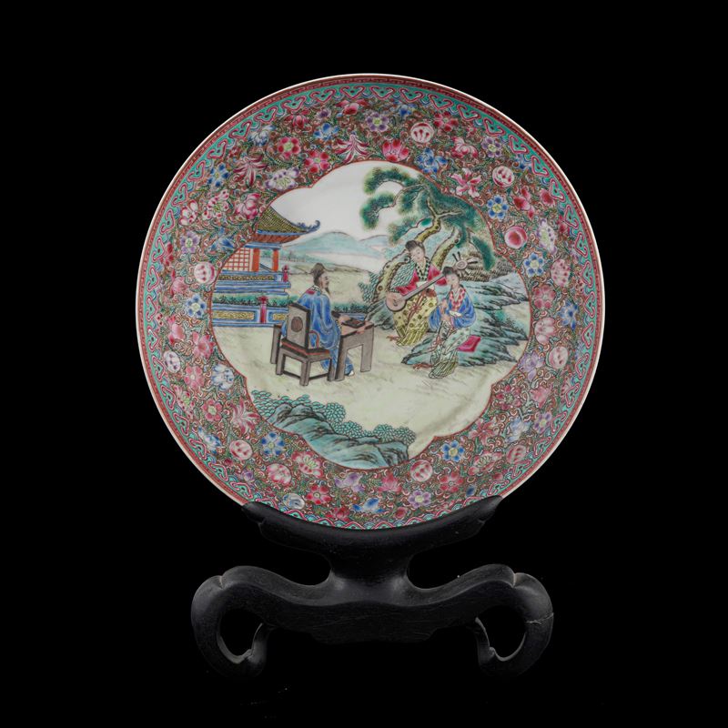 Piatto in porcellana Famiglia Rosa, Cina XIX secolo