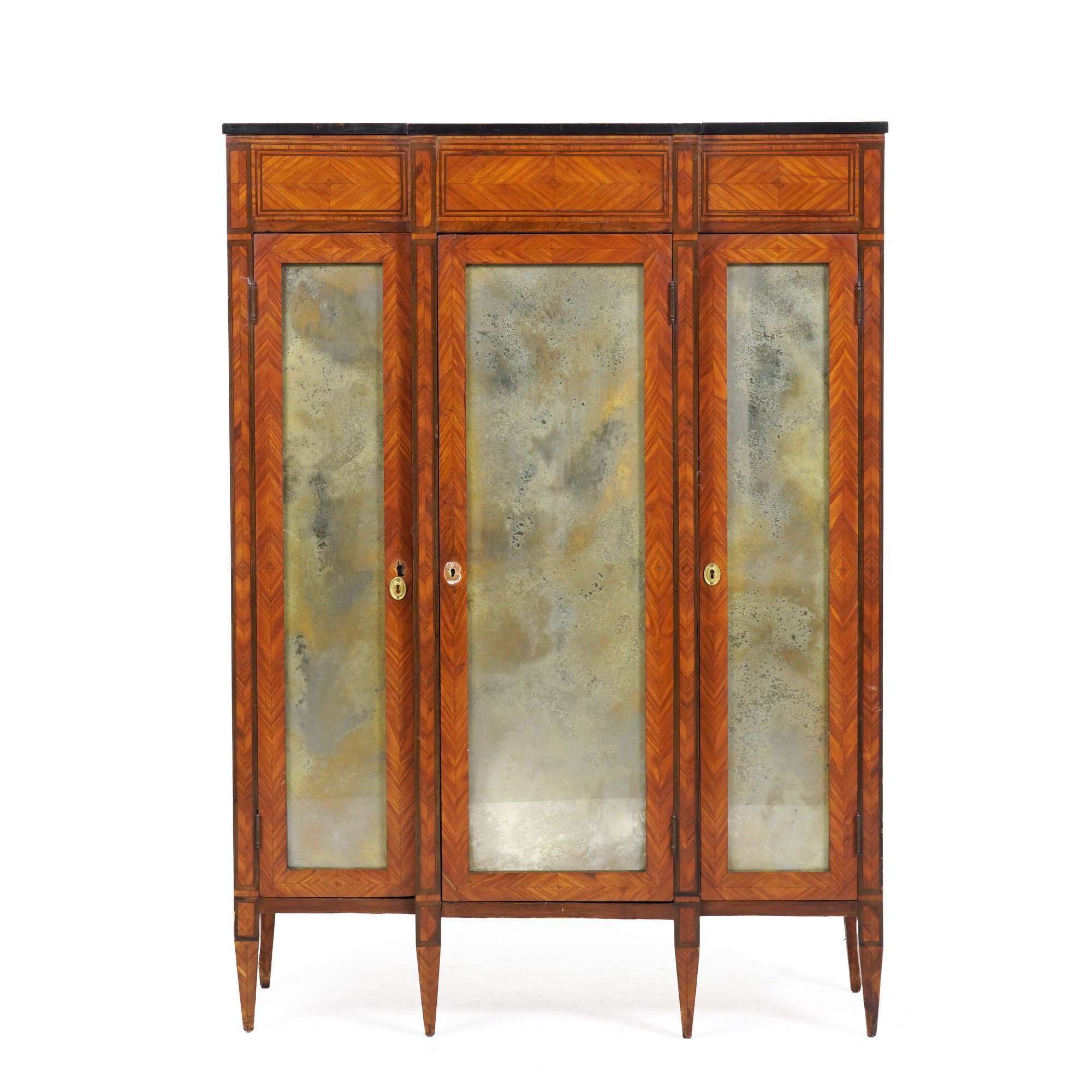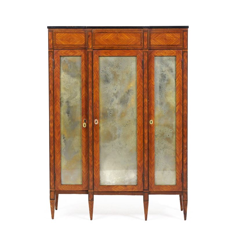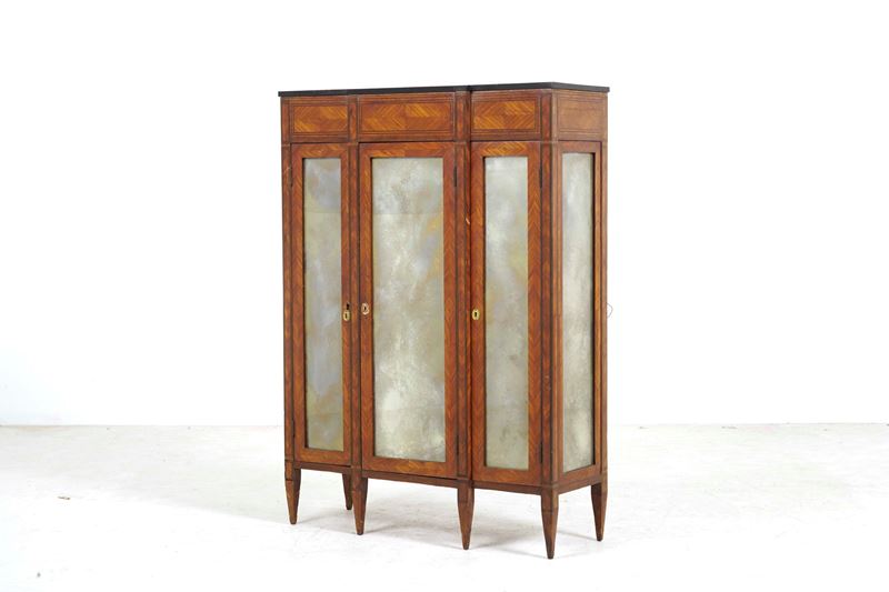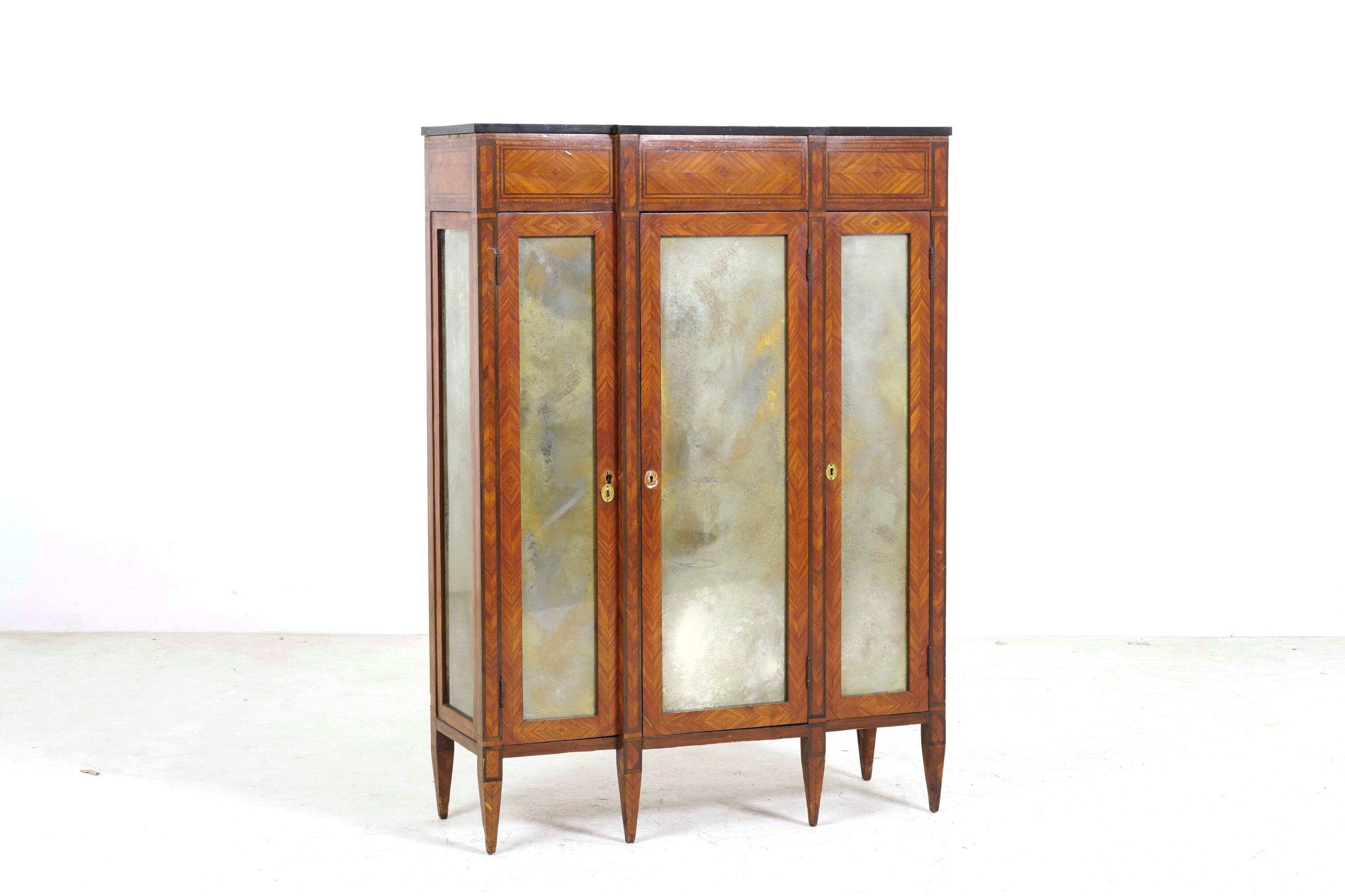 Piccola libreria a tre sportelli in stile Luigi XVI lastronata in bois de rose e filettata