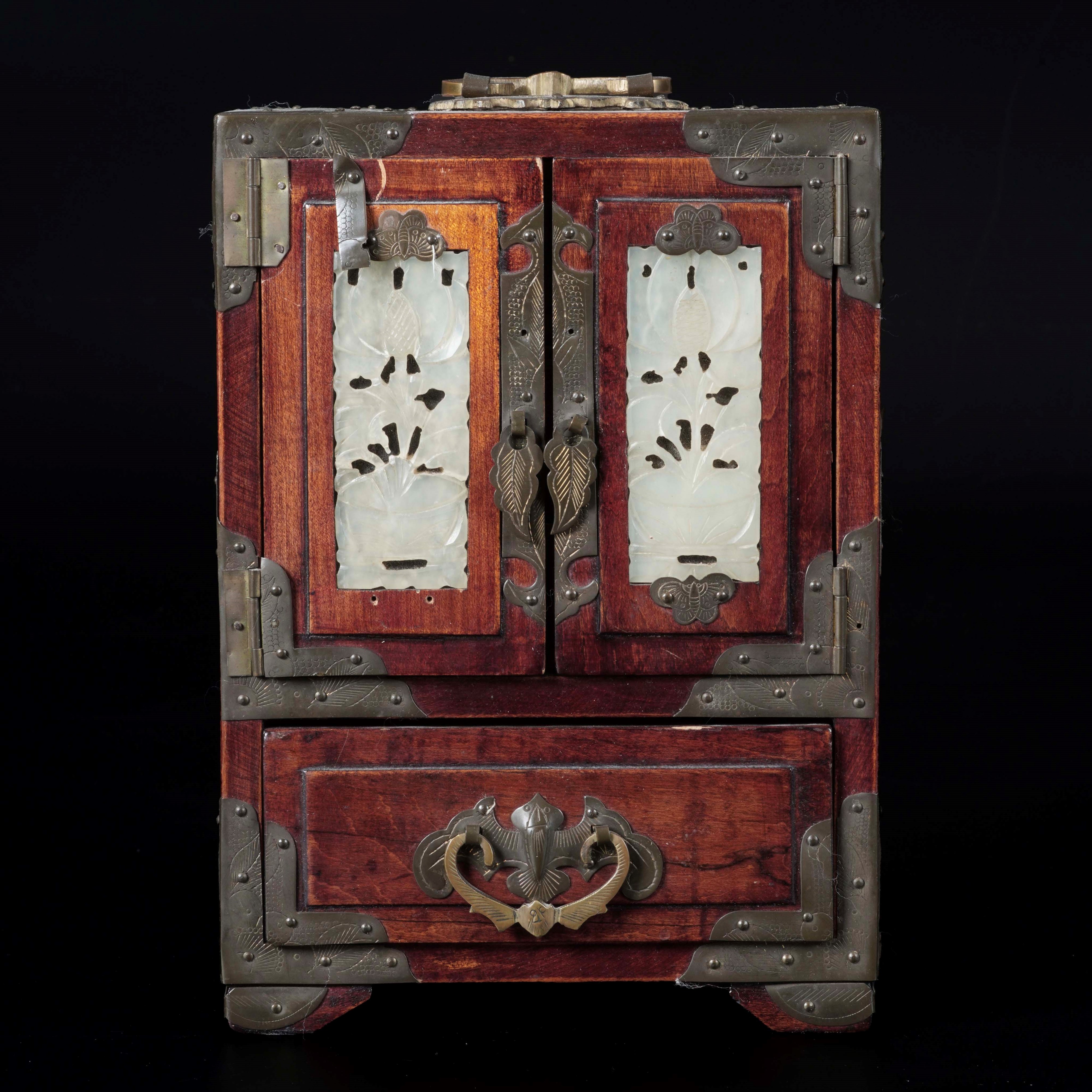Scrigno in legno con placche in giada