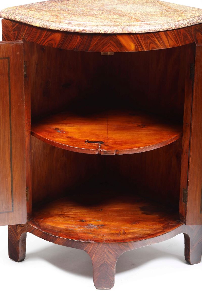 Coppia di angoliere lastronate in palissandro, XVIII secolo