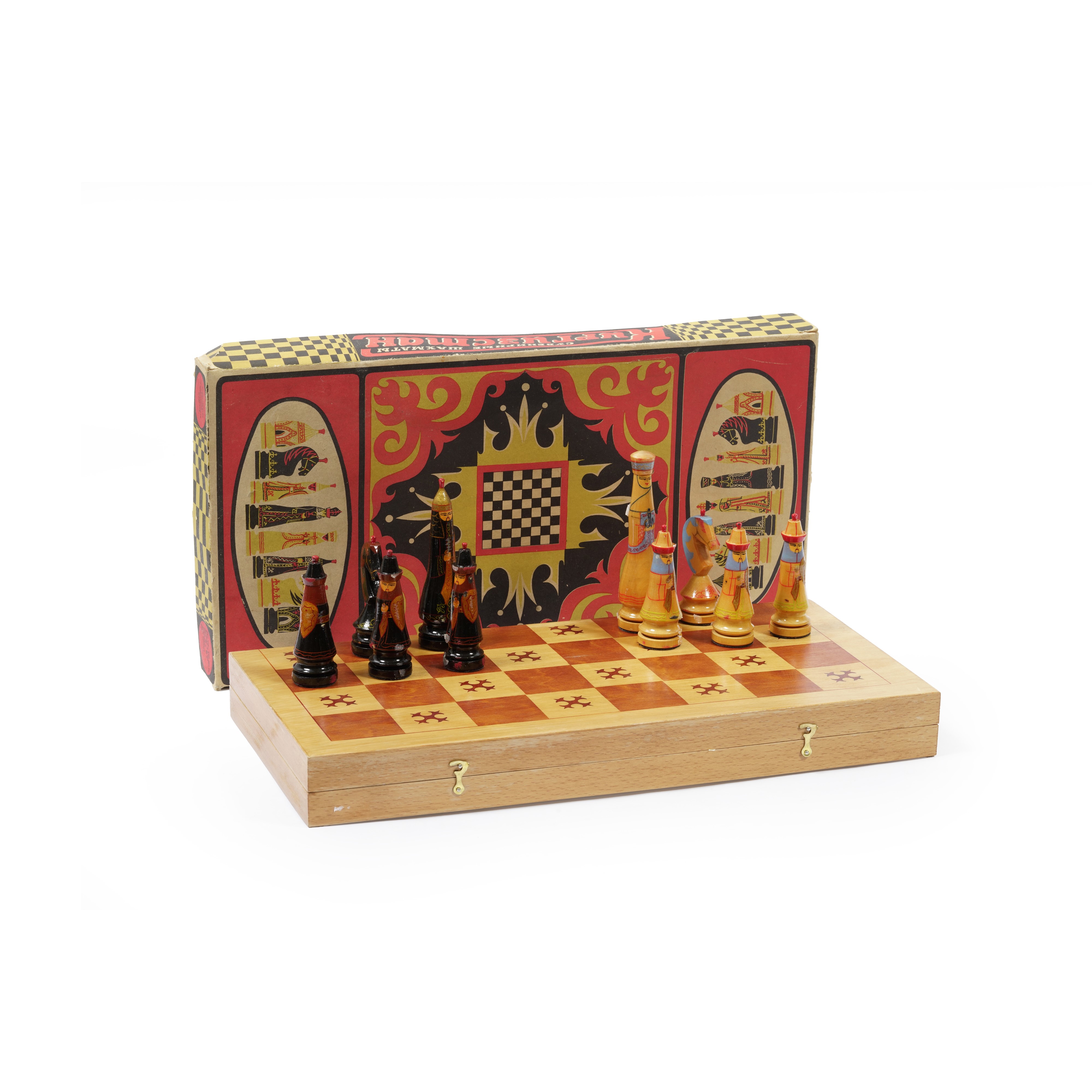 Gioco degli scacchi in legno dipinto. Russia XX secolo