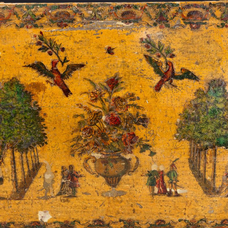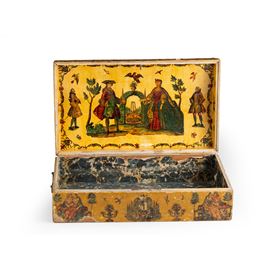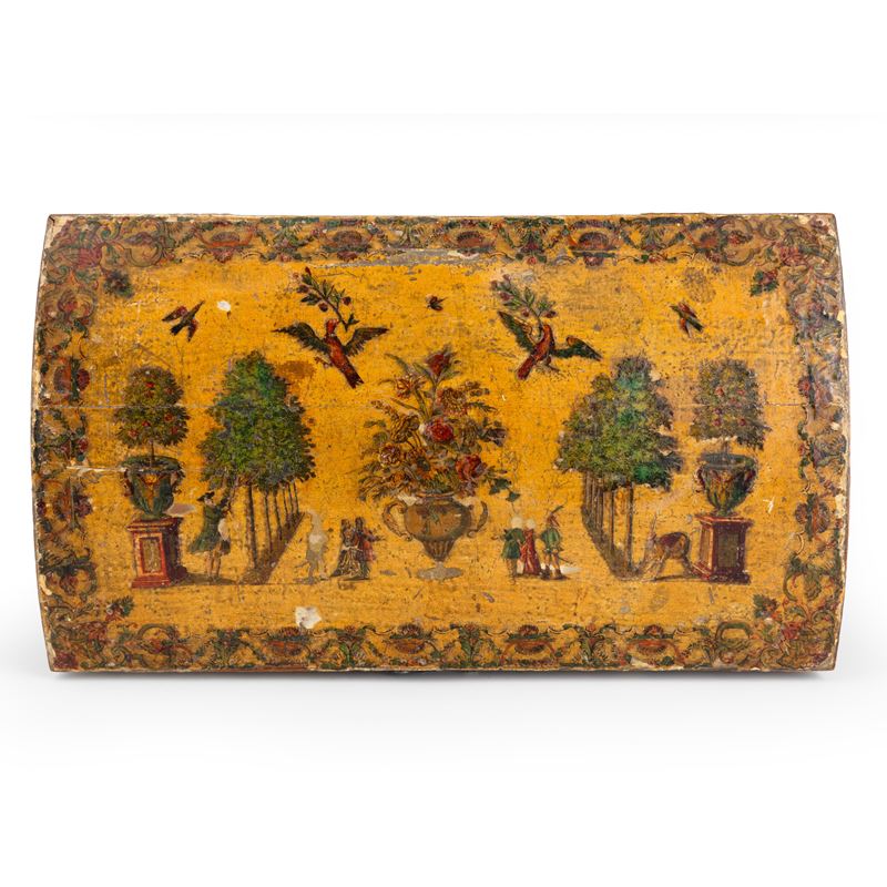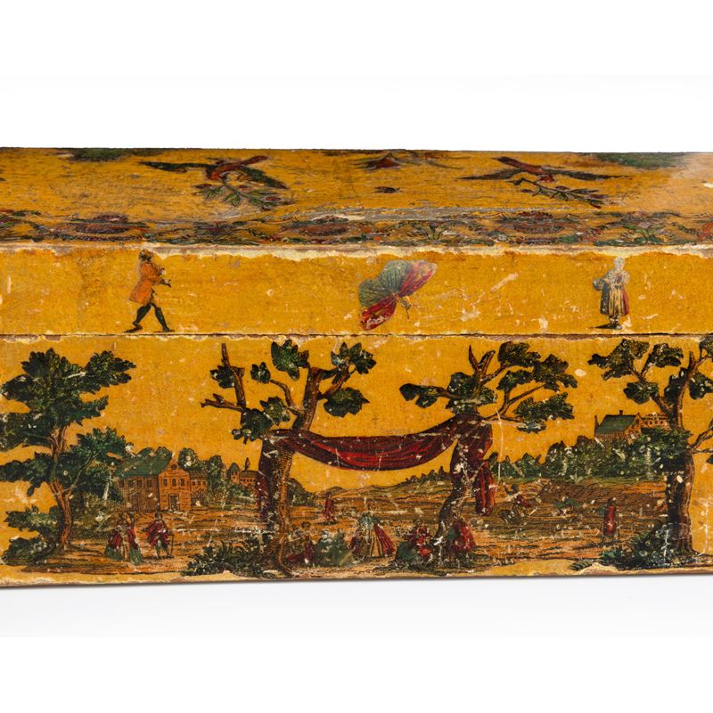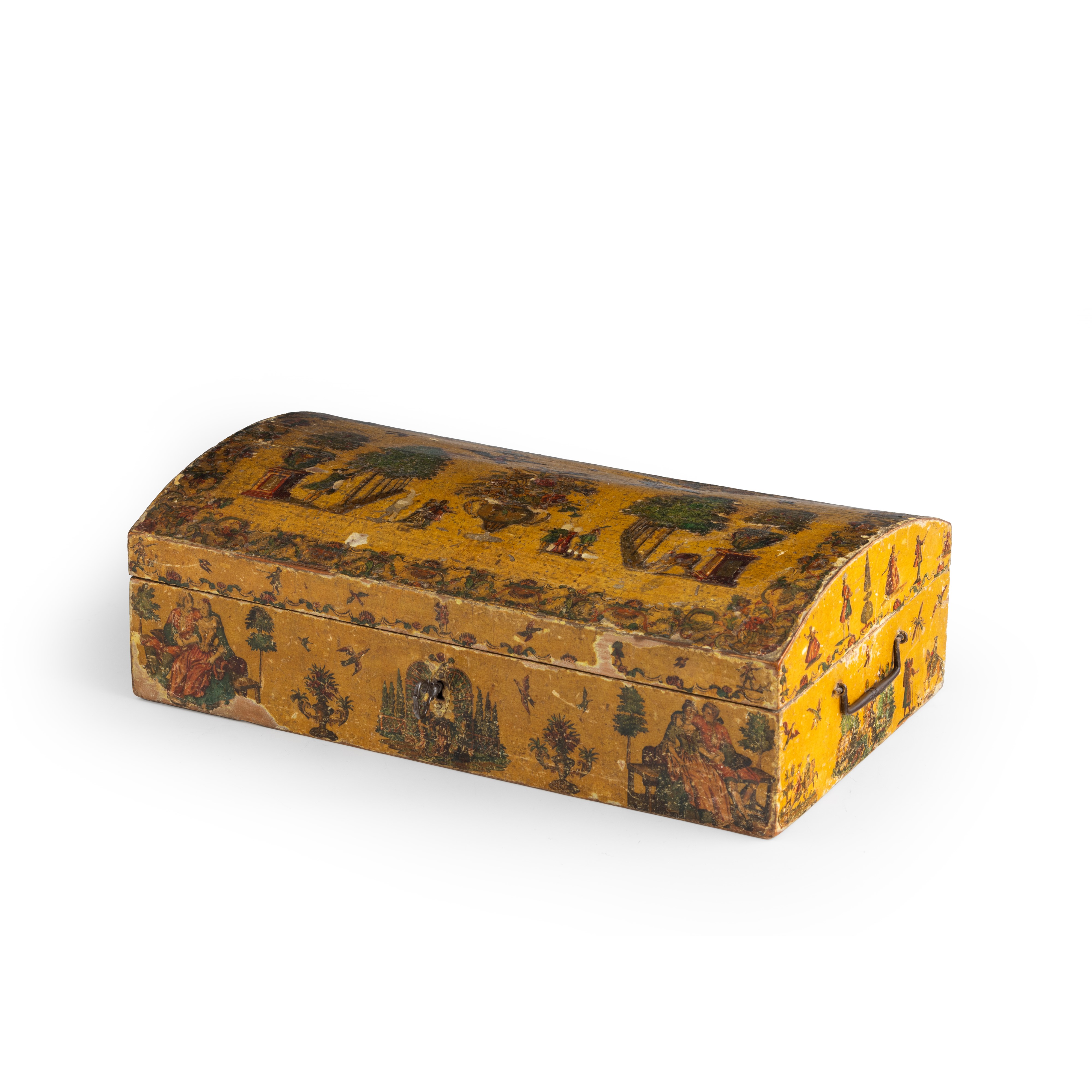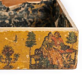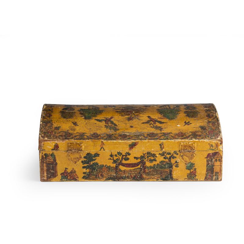 Grande scatola laccata e decorata ad arte povera. Venezia, XVIII-XIX secolo.