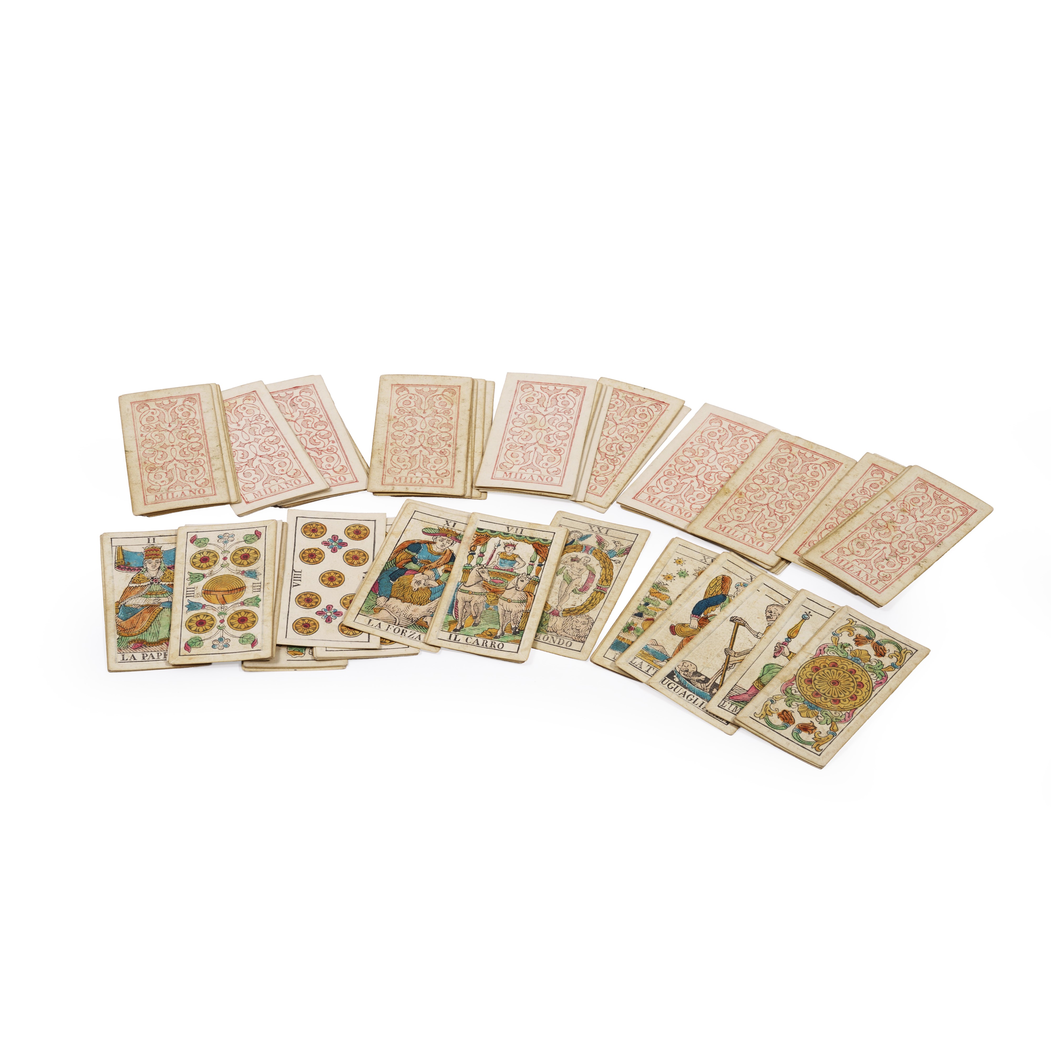 Mazzo completo di 78 carte dei tarocchi. Milano XIX secolo