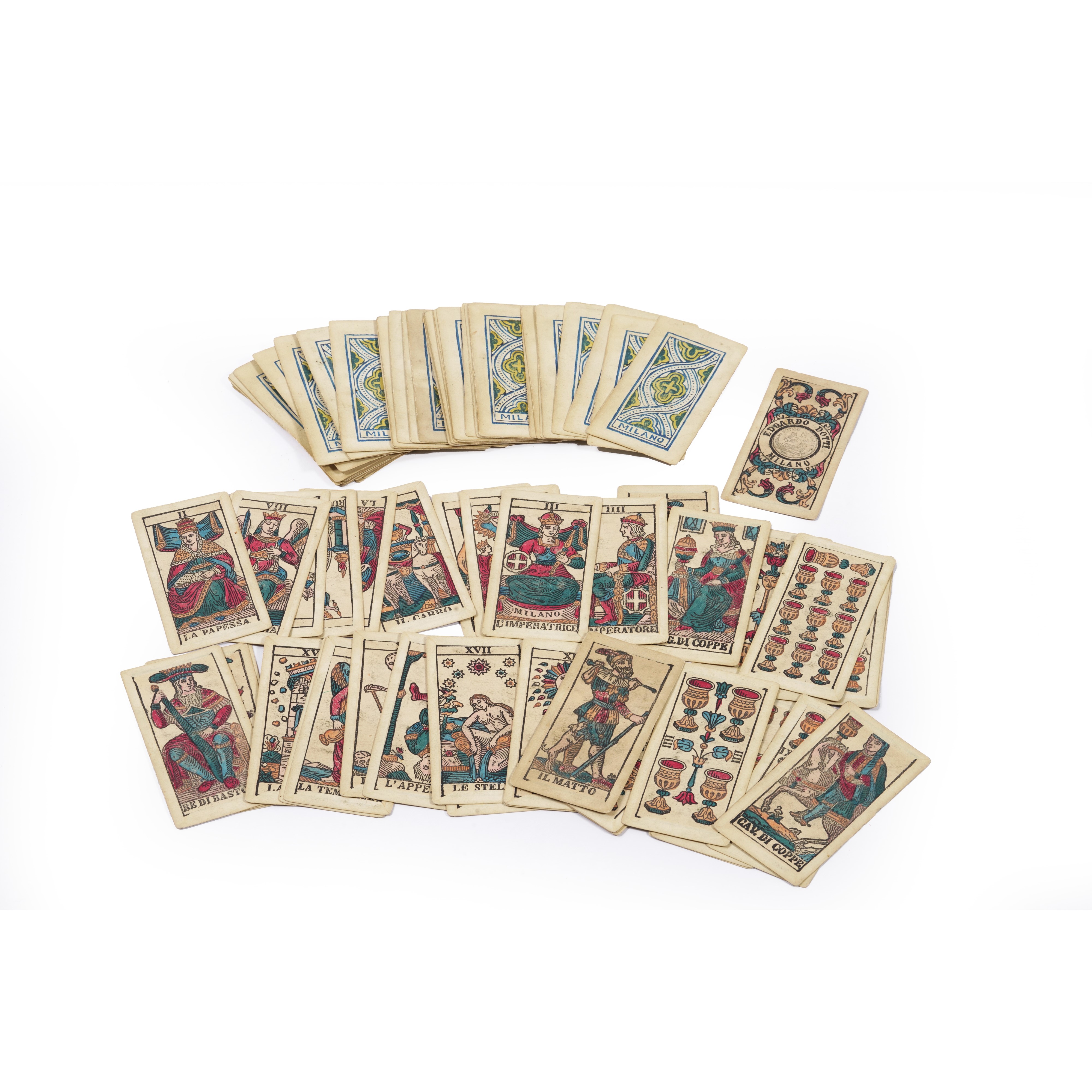 Mazzo non completo di 77 carte dei tarocchi. Milano, Edoardo Dotti, XIX secolo