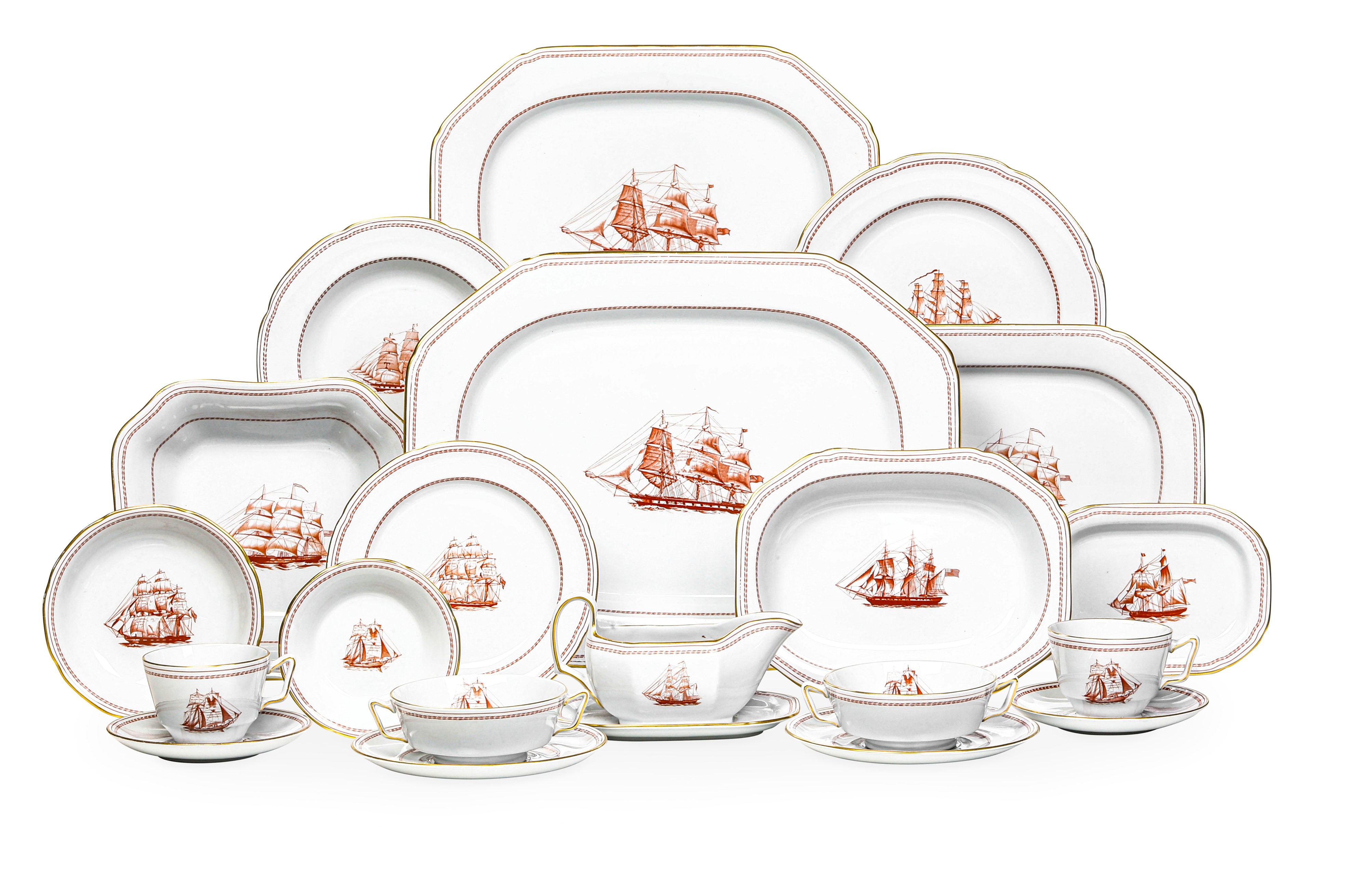 Questo modello di servizio è stato introdotto da Spode intorno al 1960 ed interrotto nel 1993. Specialmente negli Stati Uniti d’America c’era un certo interesse per le stoviglie con riproduzioni storiche, per questo i designer di questa manifattura inglese crearono il motivo a velieri ripresi dai libri, dai manoscritti specializzati e dai musei tra cui il National Maritime Museum di Greenwich. Tutte le navi riprodotte nel servizio, per lo più americane ma anche britanniche, sono menzionate sul retro o sul lato inferiore delle stoviglie con il loro nome e la data di costruzione.