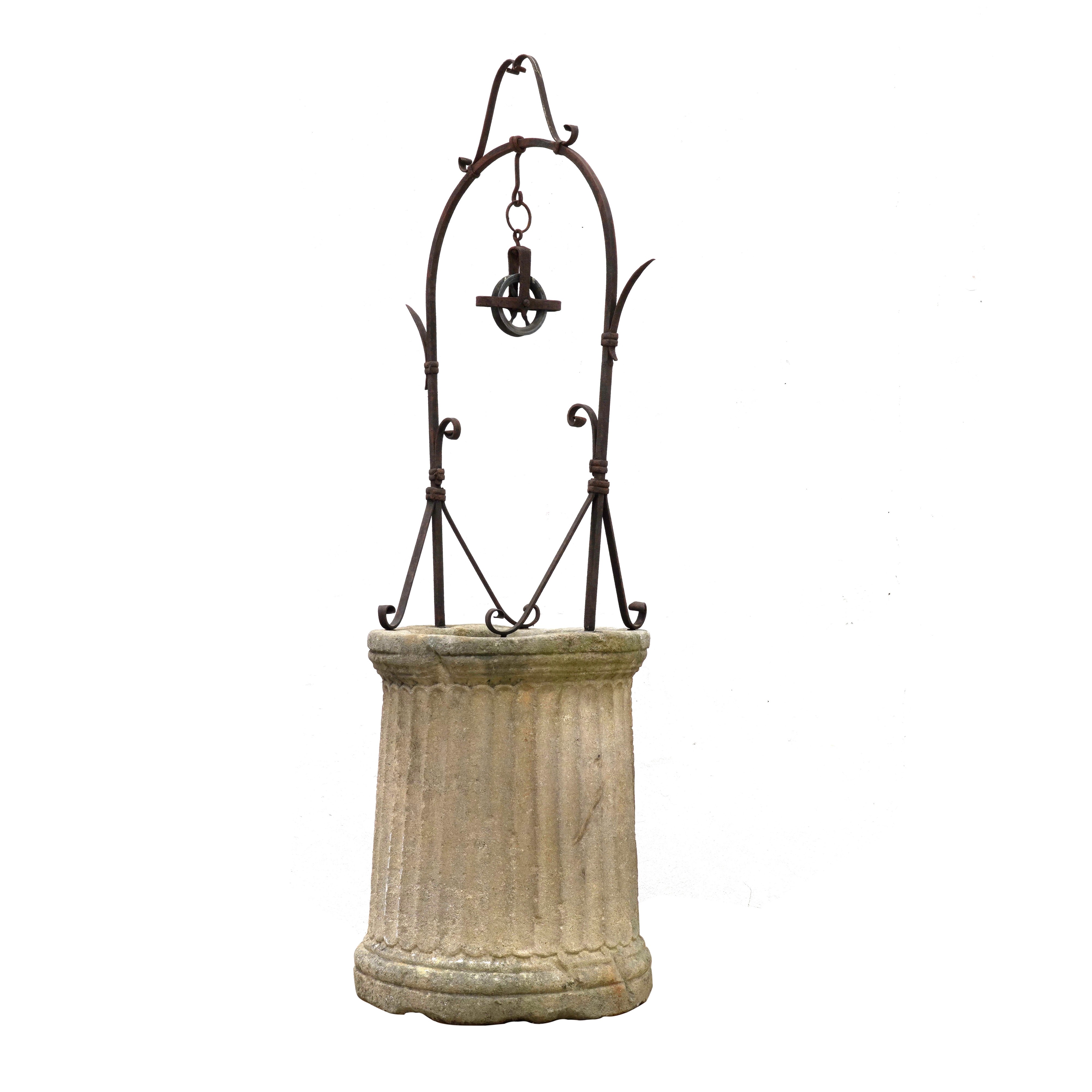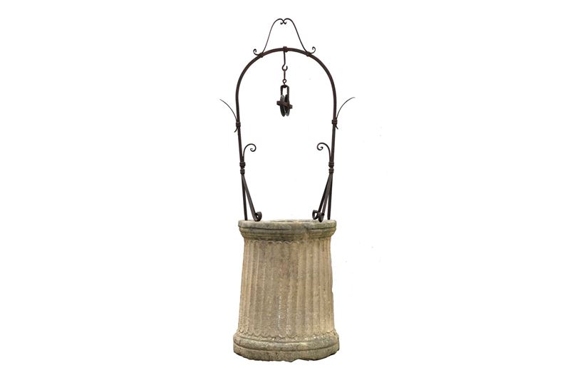 Vera di pozzo in marmo a colonna scanalata. XVI secolo