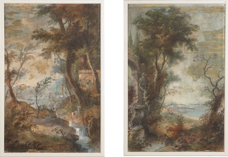 Scuola del XVIII-XIX secolo Paesaggi fluviali con architetture
