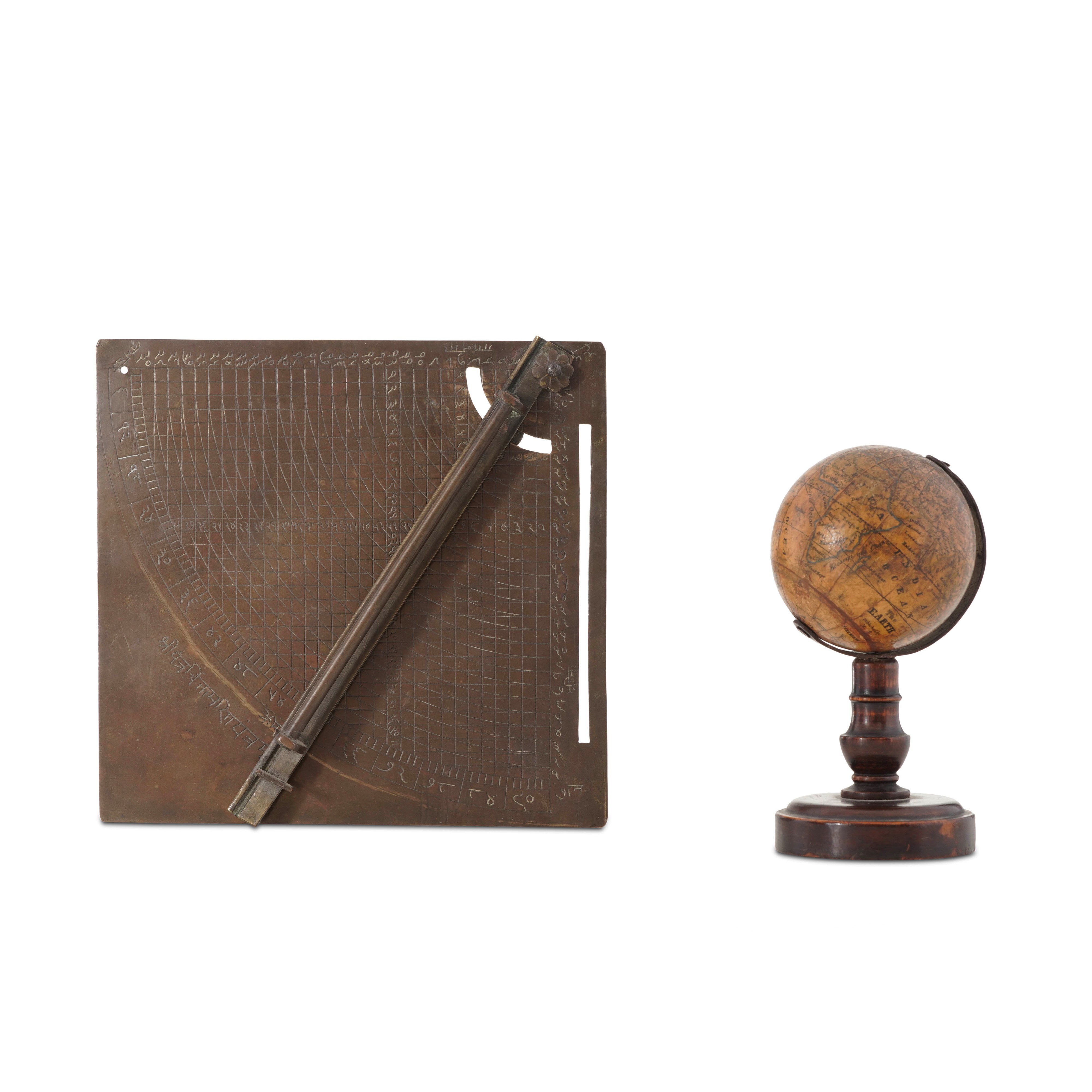Lotto di un piccolo globo e un sestante in ottone. Medio Oriente e Inghilterra, XIX secolo