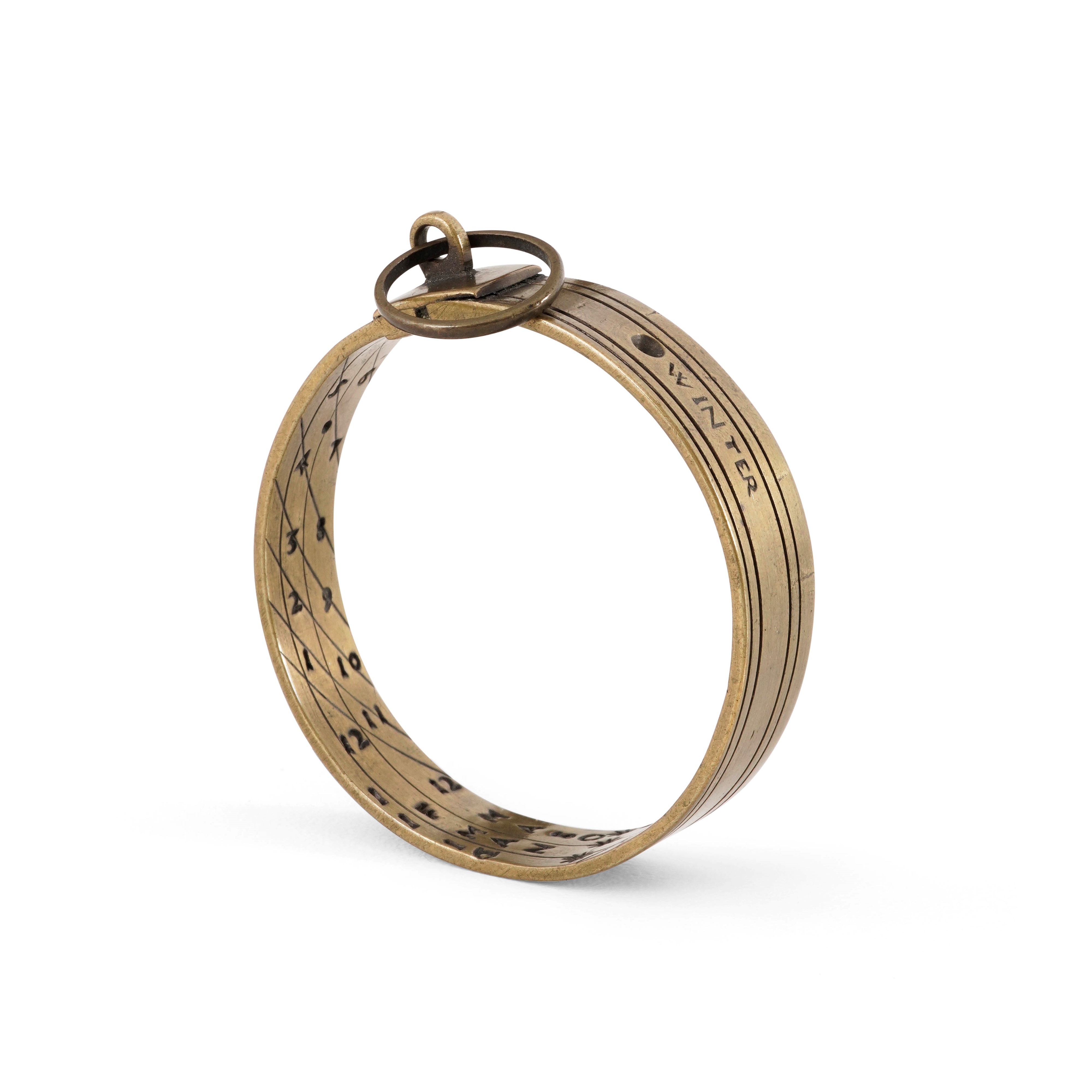 Meridiana solare ad anello in ottone, Inghilterra, datata 1677