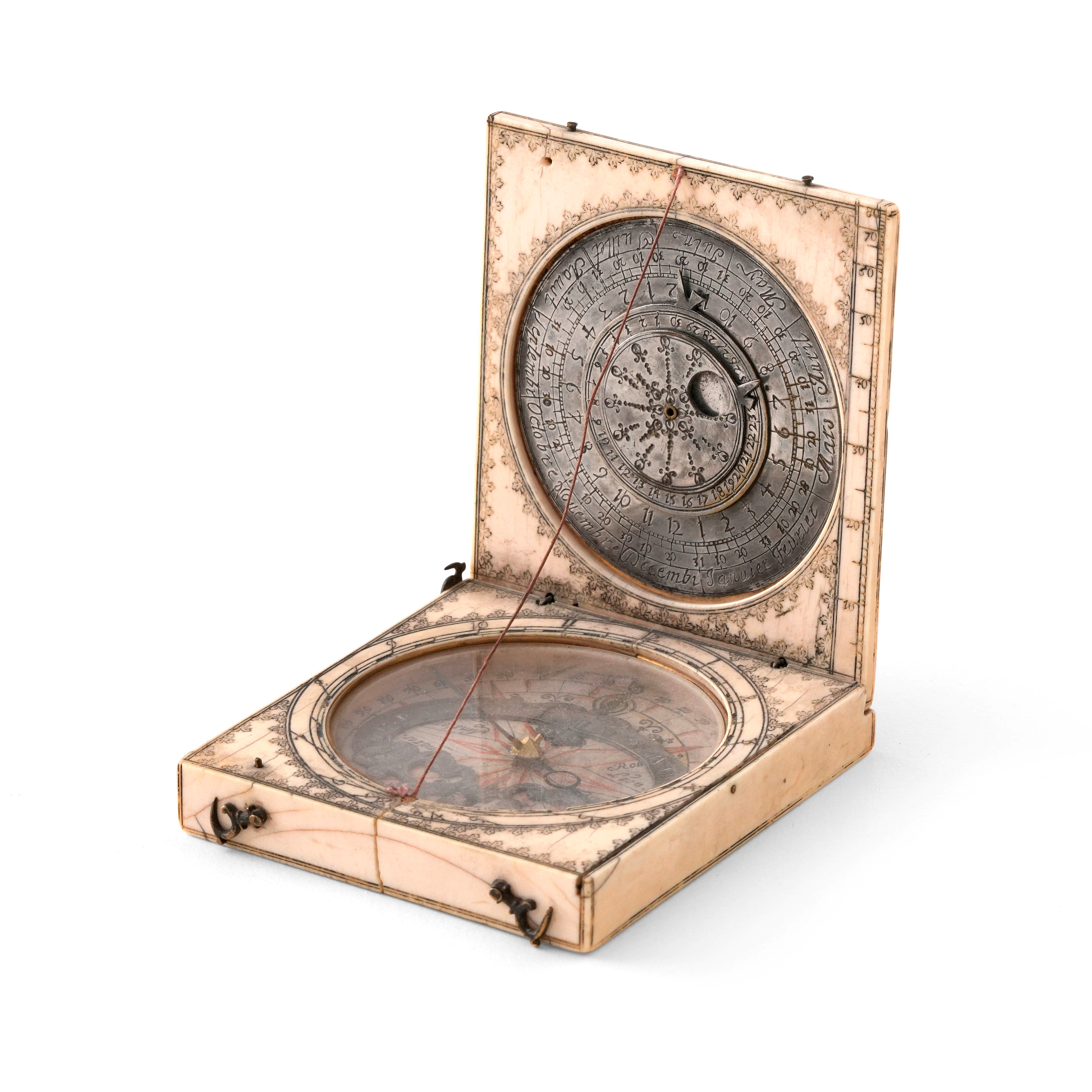 in avorio e argento completo di bussola e volvelle, analemmatico magnetico