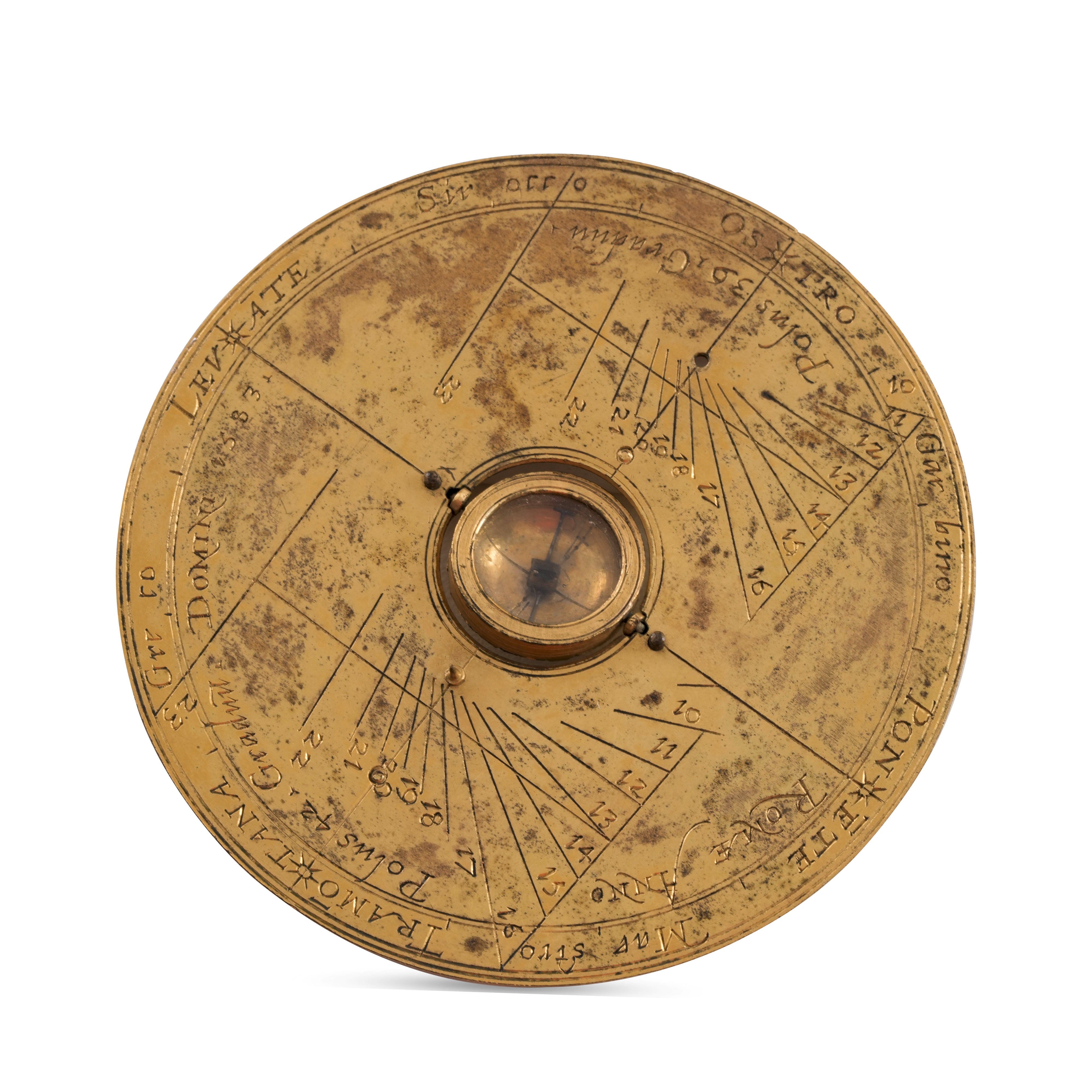 Orologio solare orizzontale in ottone. Datato Romae Anno Domini 1583