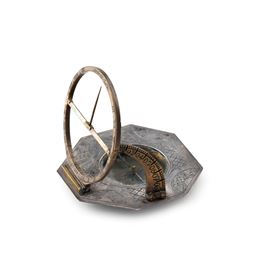 Orologio solare ottagonale equinoziale in argento e ottone. Firmato Andreas Vogler, bollo della città di Ausburg, XVIII secolo