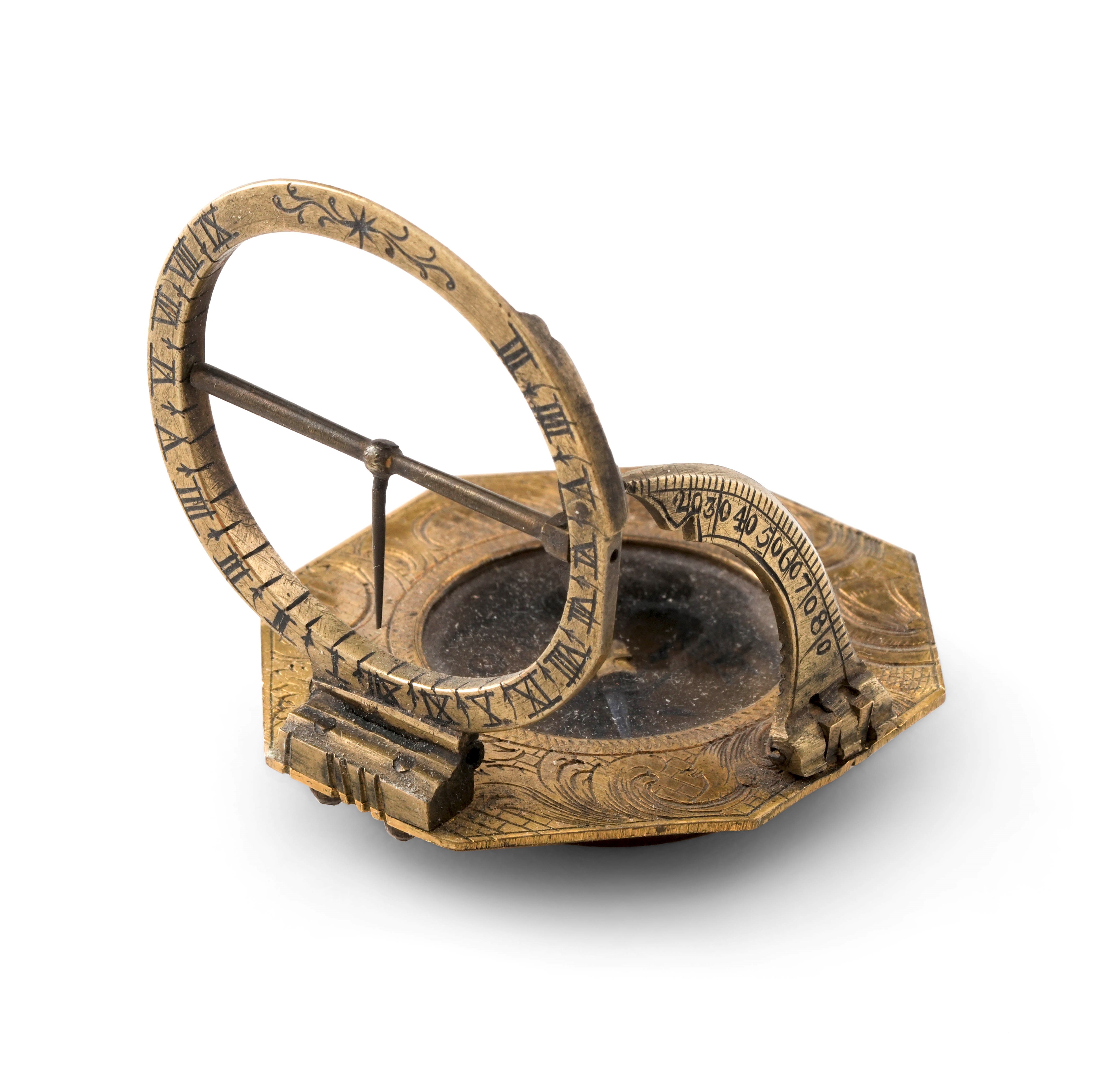 Orologio solare ottagonale equinoziale in ottone. Siglato L.T.M. (Ludvig Theodatus Müller), Germania XVIII secolo