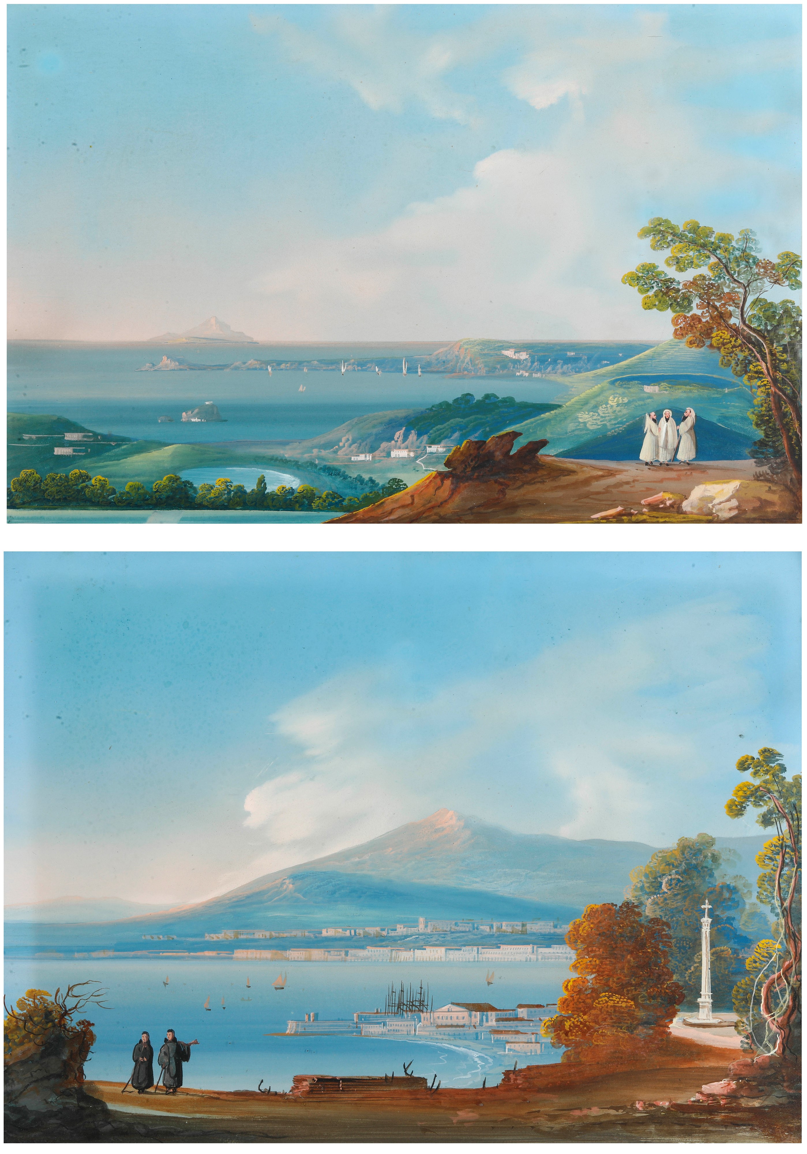 Pittore del XIX secolo Coppia di vedute costiere