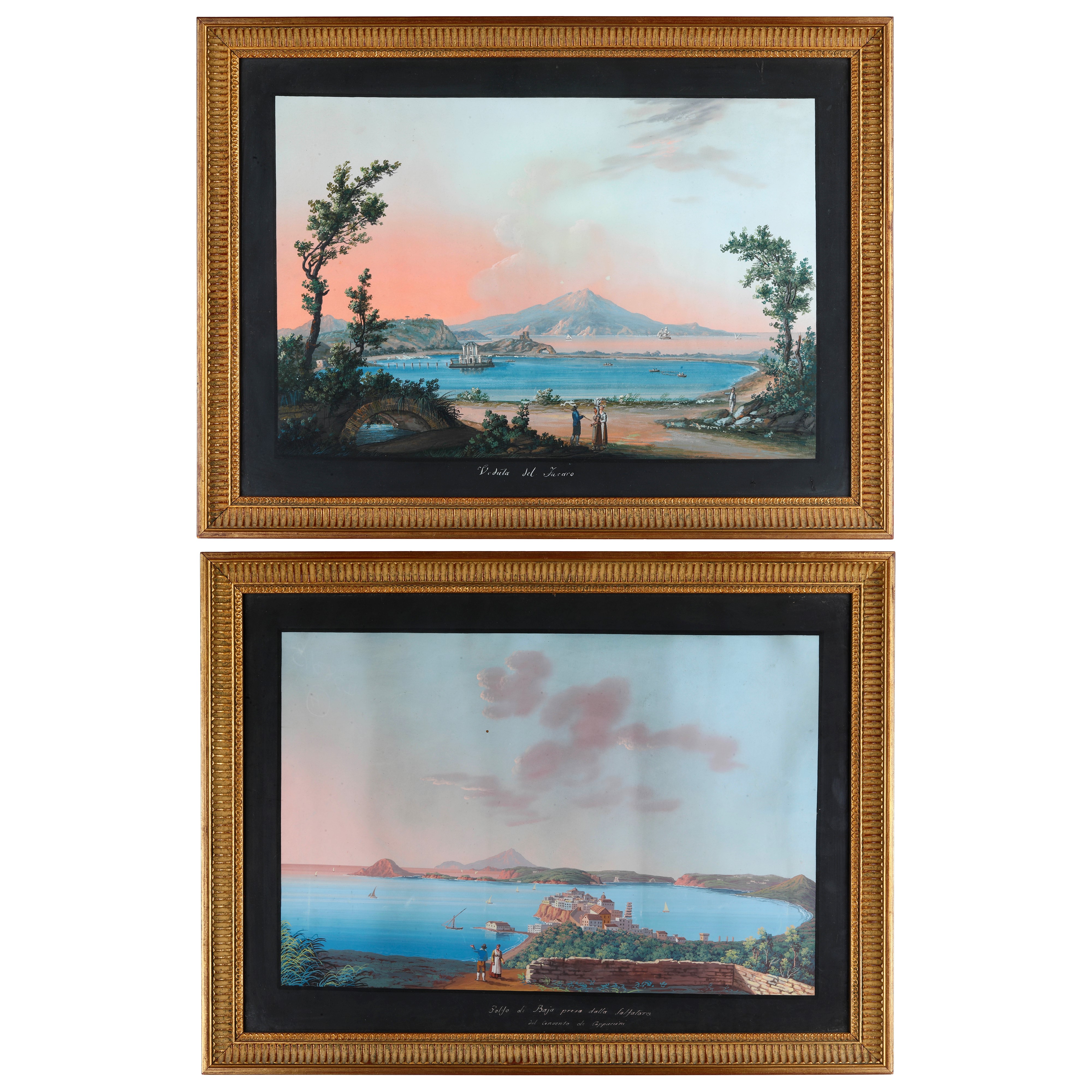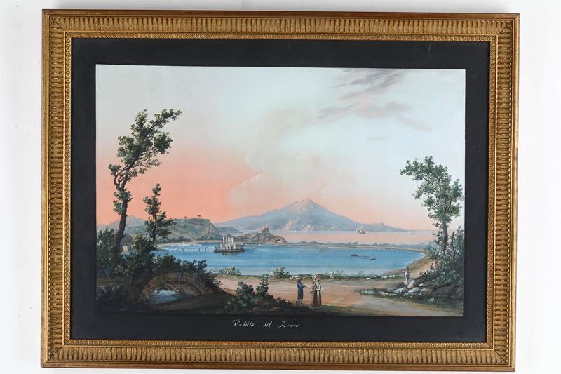 Pittore del XIX secolo Veduta dal Fusaro Golfo di Baia preso dalla solfatara del Convento dei Cappuccini