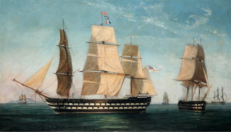 Scuola del XIX secolo Marina con velieri