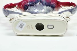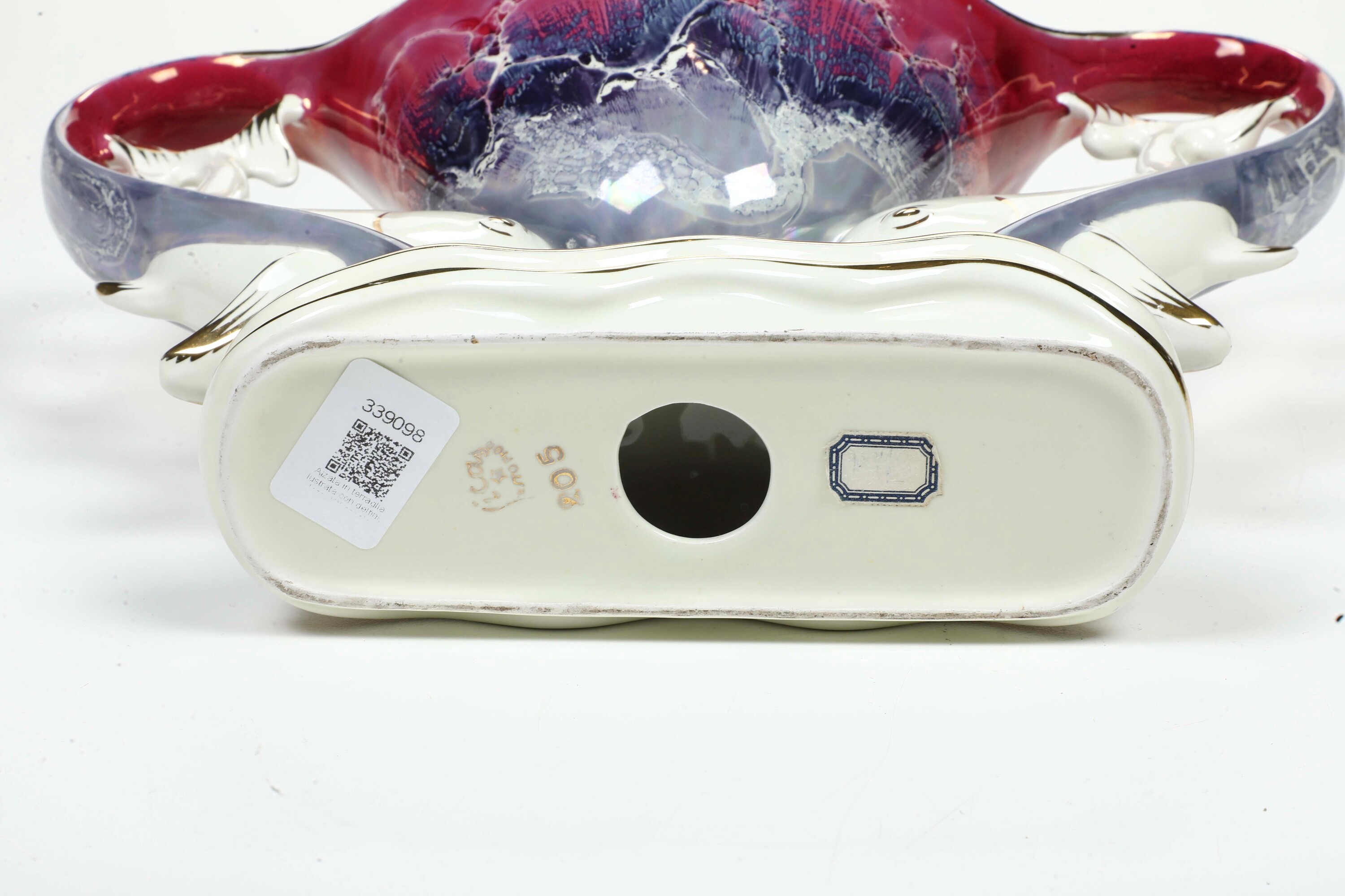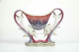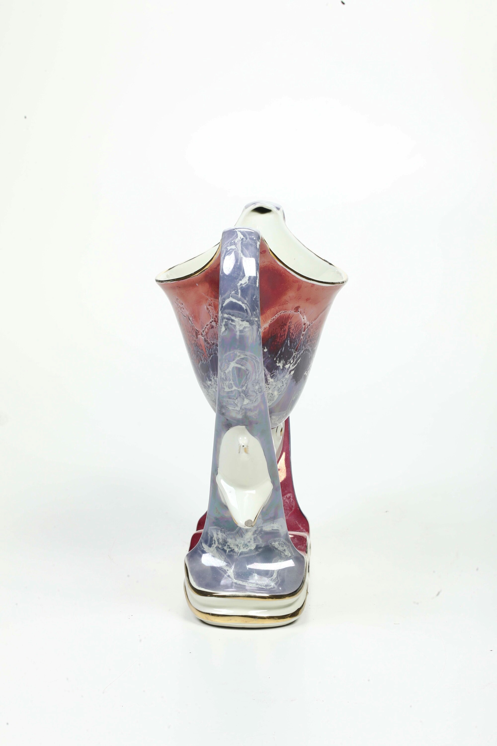 Terraglia in parte lustrata. Marca: "ICAS". Altezza cm 25,5. Conservazione: ottima; qualche usura all'oro.