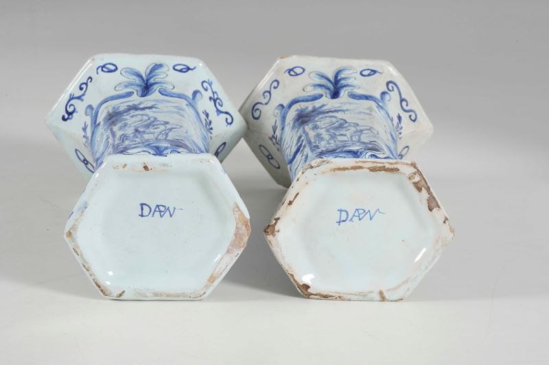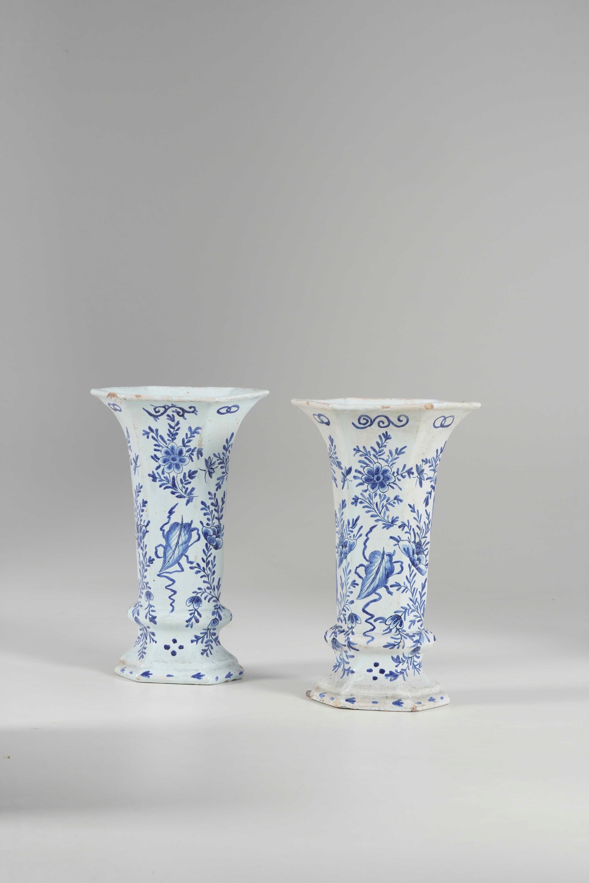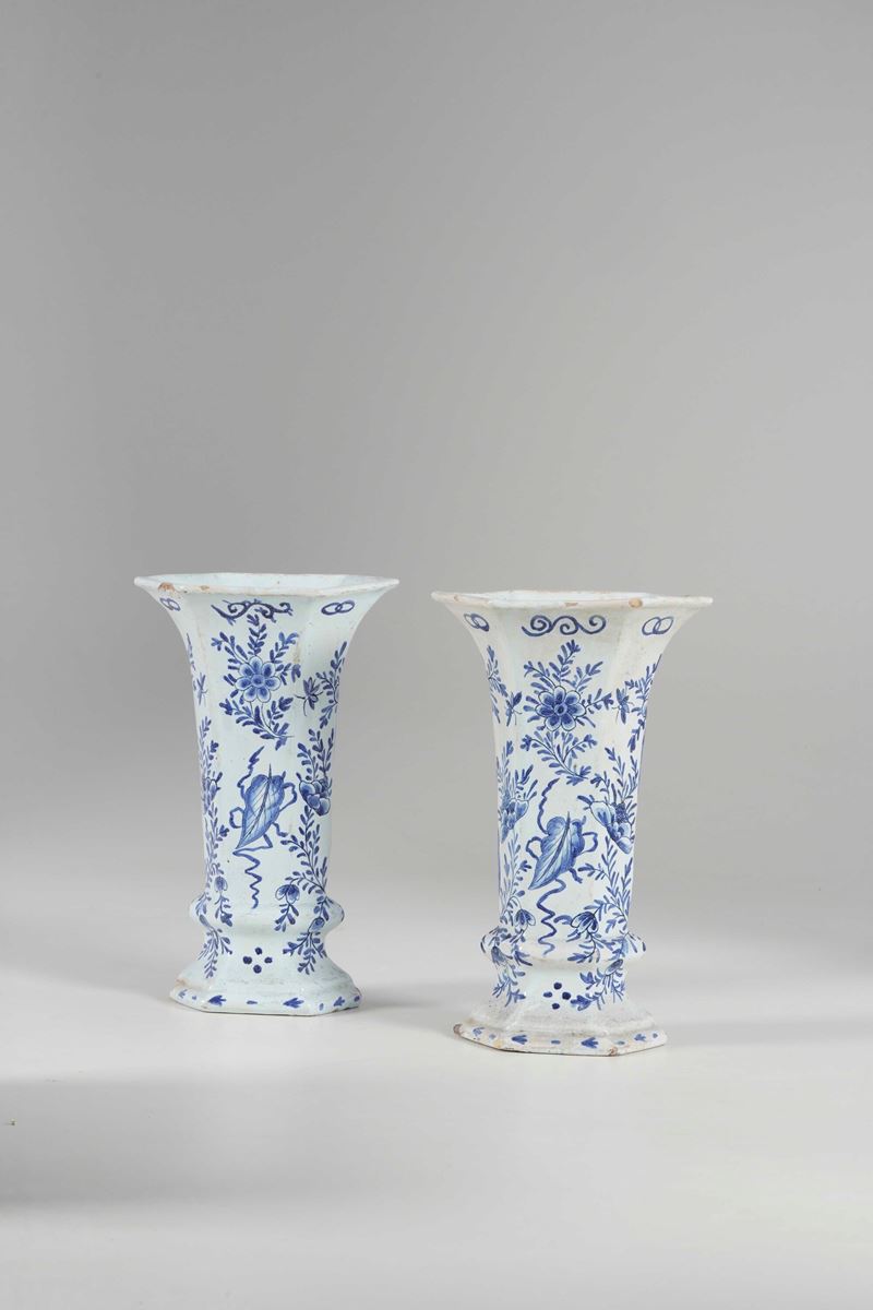Coppia di vasi a tromba. Delft, Manifattura De Paeuw, XIX o XX secolo.