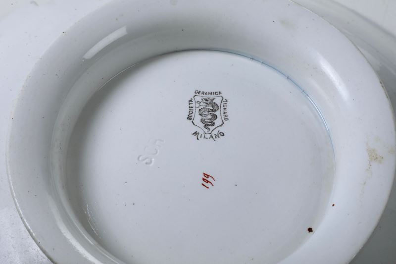 Terraglia. Marca: stemma con biscione e “Società Ceramica Richard Milano”. Conservazione: diversi pezzi con sbeccature.