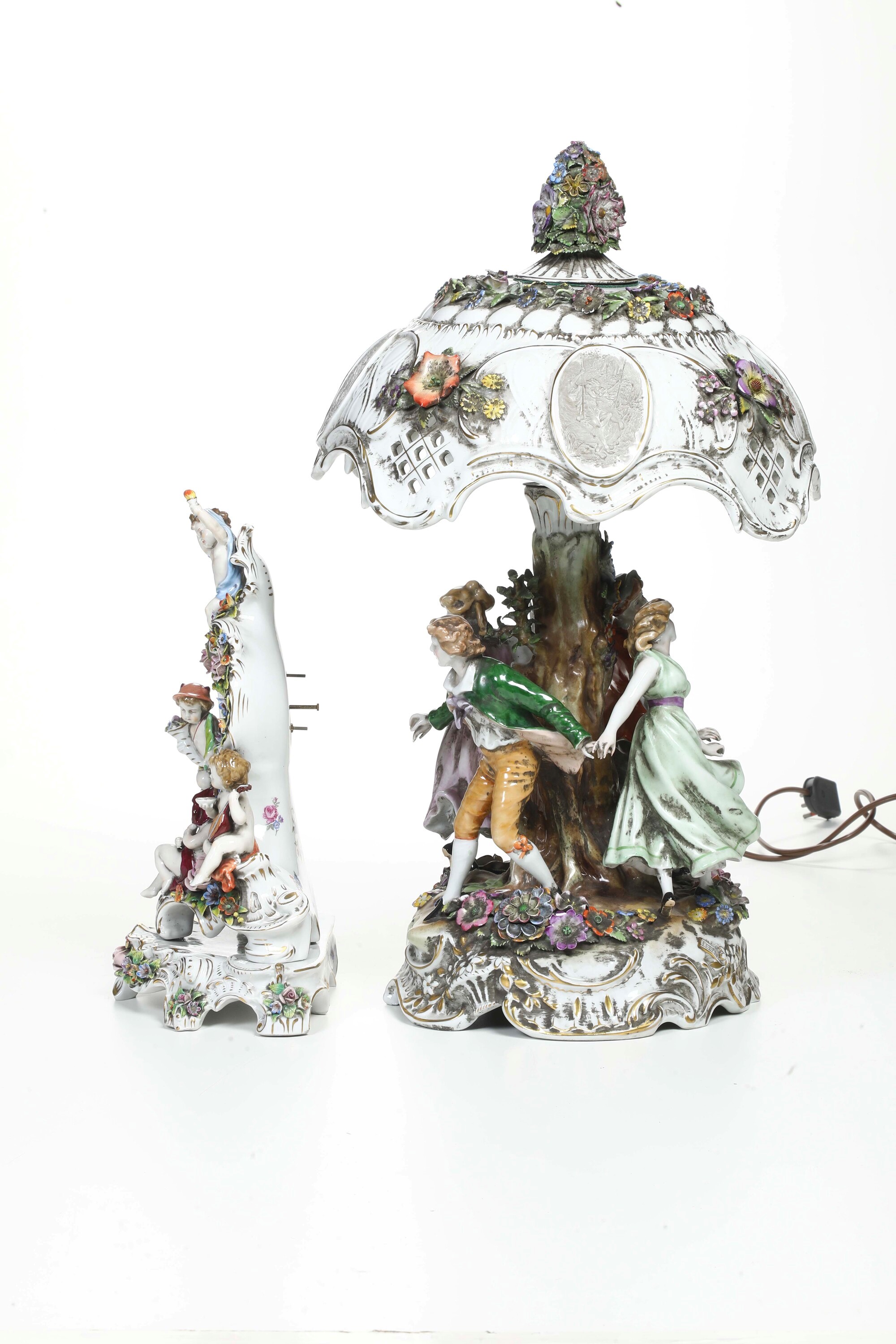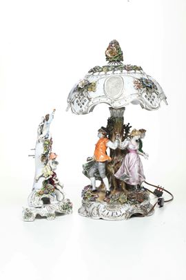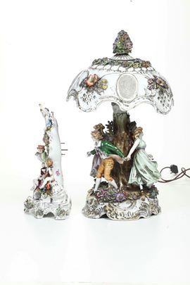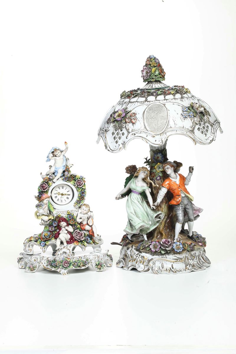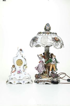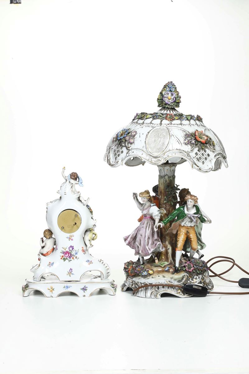 Lampada e orologio da tavolo. Germania, Manifattura della Turingia, XX secolo.