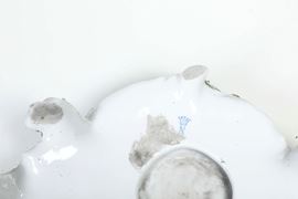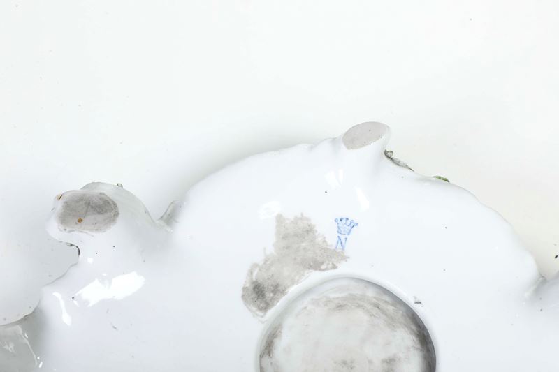Porcellana. Marca: "N" con corona in blu. Altezza: lampada cm 54 ; orologio cm 35. Conservazione: buona; mancanze minori