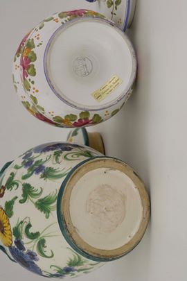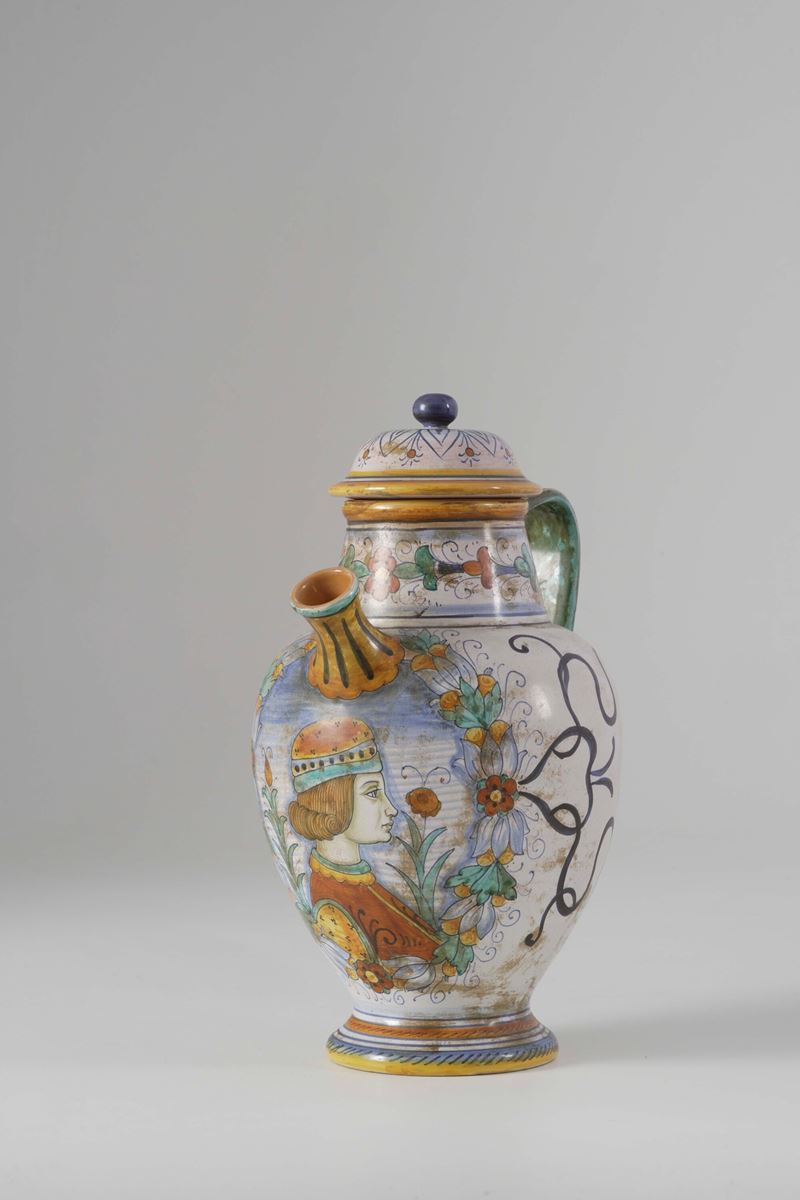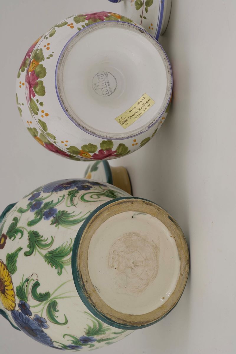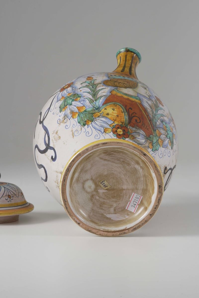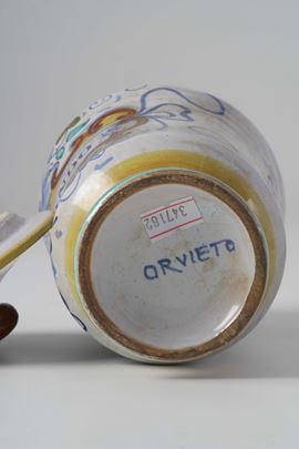 Maiolica e terraglia. Marca: assente. Altezza massima cm 28. Conservazione: ottima nel complesso; qualche sbeccatura